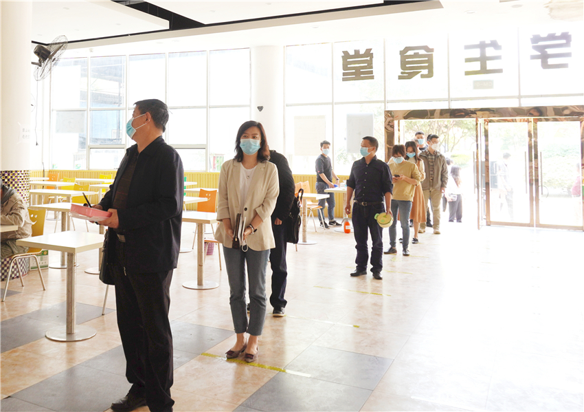 为贯彻落实4月24日教育厅召开的全省高校新冠肺炎疫情防控及开学工作培训视频会会议精神,深入学习贯彻习近平总书记关于做好新冠肺炎疫情防控工作的重要指示批示精神,进一步强化学校疫情防控工作,全力做好开学后疫情防控和学生饮食安全保障,同时规范员工疫情防控应对处置流程,4月28日中午,四川文化传媒职业学院在崇州校区学生食堂开展了疫情防控期间食堂就餐流程演练活动。学院院长杨宁、执行院长罗琴、党委书记谢桂兰、副院长彭立、副院长李忠民、副院长罗江、院长助理陈雷,各部门中层干部及各系部正副主任、教学科长、学管科长参加本次演练。