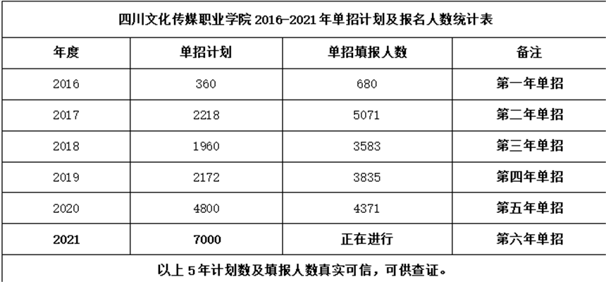 (从2016年四川文化传媒职业学院开始单招以来,连续5年填报情况较好,一所学校受到认可不是短期的,而是多年办学实力和口碑的积累):