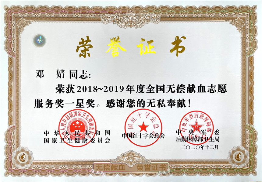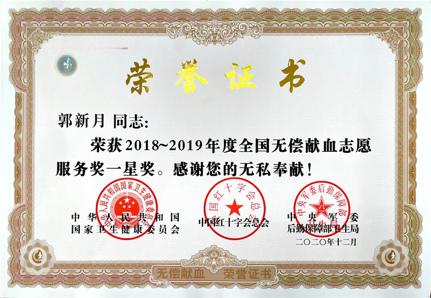 据介绍,获得荣誉的三名学生在2018年——2019年的志愿者献血活动中,总时长超过120小时,为青年志愿者们做出榜样,这份荣誉不仅为了鼓励每一个无偿奉献的青年志愿者,同时也希望能有更多的文传学子参与到献血的队伍中来。