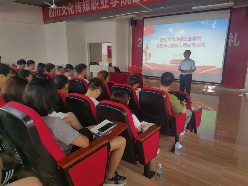 2021年7月8日上午,四川文化传媒职业学院特邀四川中医药高等专科学校马克思主义学院教研室主任、新疆大学马克思主义理论专业博士研究生、教育部西北民族研究中心研究员、我院思政部专业建设指导主任杨斌莅临学院绵竹校区做《中国共产党为什么能》党史学习教育专题辅导报告,党委书记周世伟主持报告会,绵竹校区全体行政人员、全体教师党员和各二级学院教师聆听报告。