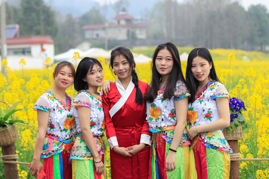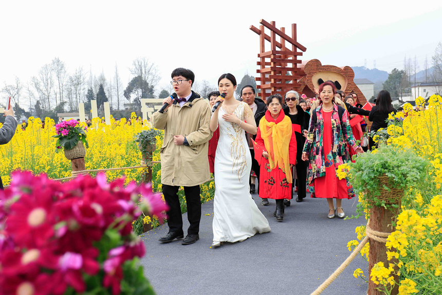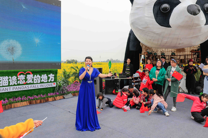 活动现场,由歌唱者带领近百名志愿者唱起《我和我的祖国》,从花海不同的路径汇聚到主舞台,无论老少都在激情地演唱,现场氛围感染了很多游客,大家都参与到演唱中来,为祖国歌唱,为家乡喝彩。学院师生们带来了《梨花颂》、《龙船调》、《龙文》等脍炙人口的歌曲,在场的群众都积极跟着音乐,打着拍子一起唱。来自青海玉树的藏族姑娘永尕拉毛,背上心爱的手风琴为大家带来非常好听的《康巴姑娘》、《北京的金山上》,赢来阵阵掌声。杨思宇老师作为特邀嘉宾,也为大家带来了一首回忆满满、深情满满的《绒花》。最后,现场文化志愿者们还带领游客朋友面对油菜花海唱起了崇州原创歌曲《乐动花海》。本次活动得到了鸡冠山生态馆、崇阳街道文化活动中心、大划镇综合文化站、道明镇综合文化站的大力支持。