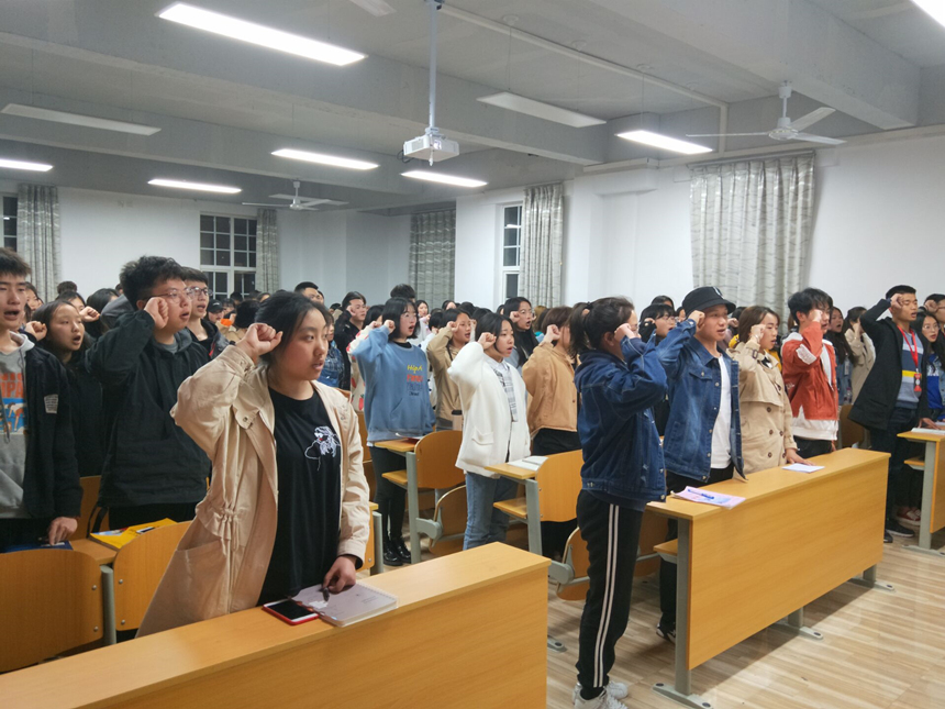 最后,“凝聚青年跟党走,不忘初心勇前行”——四川文化传媒职业学院“第一堂团课”在全体团学干部重温入团誓词中结束。