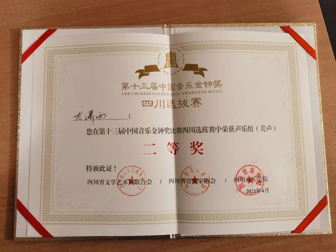 今年四月,第十三届中国音乐金钟奖四川选拔赛落下帷幕,我校传媒艺术学院青年教师龙潇雨凭借《不要靠近那坟墓》和《望乡词》曲目荣获声乐(美声)组二等奖,并顺利通过全国初选赛,将于十月在成都参加全国总决赛。