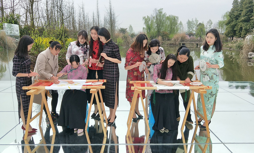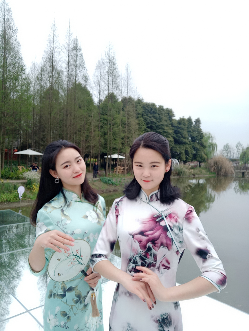 当日上午,我院旗袍爱好者分别到锦江乡乌龙村天空之镜与观胜镇严家弯湾拍摄蜀绣照片,蜀绣绣由专门的老师进行现场指导。一场别开生面的“花田旗袍秀”成为这个季节里的别样美景,吸引了众多游客驻足观看。