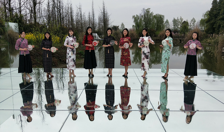 绮缎流光瘦柳腰,锦丝飞彩缀绸绡。近日,四川文化传媒职业学院院团委组织的“旗袍佳丽”参加由中共崇州市委宣传部、崇州市文化体育和旅游局、崇州市妇联主办,锦江乡人民政府、观胜镇人民政府协办,四川省文化传媒职业学院、崇州市旗袍会、崇州市舞蹈艺术协会协办的抖音拍摄活动。
