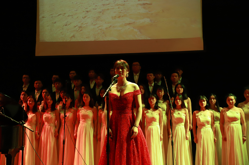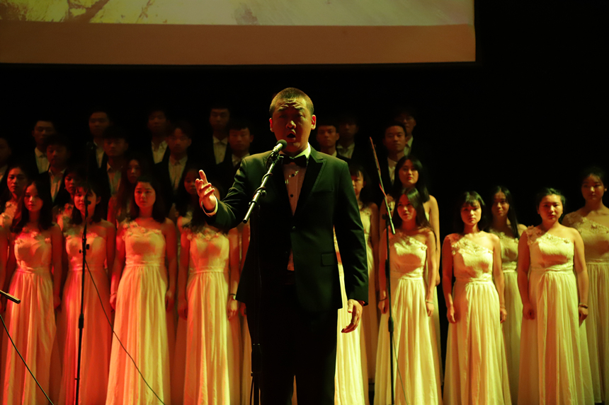 文艺汇演在激情澎湃的《国际歌》歌声中拉开序幕,动感而富有节奏的旋律瞬间点燃现场观众的热情,引来的阵阵掌声与欢呼;歌曲《我爱你,中国》饱含对祖国的深切热爱;独唱《黄河颂》歌颂了中华民族坚强不屈的民族精神;双人舞《芳华》以舒缓的节奏、优美的舞步让台下的观众沉浸在精彩的节目中,忘情鼓掌;节目精彩纷呈,将现场气氛推向一个又一个高潮,多样化的表演形式赢得了在场师生的阵阵掌声。最后,文艺汇演在气势磅礴的大合唱《保卫黄河》中圆满落下帷幕。
