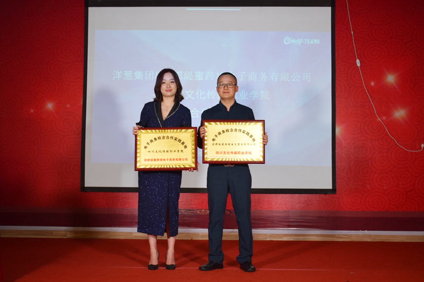 随着跨境电子商务迅速发展,跨境电子商务人才供不应求,人才缺乏已经成为制约跨境电子商务发展的重要因素,高校跨境电商人才培养往往局限于单方面培养,很少与企业实践相结合。经过多次洽谈协商,学院与洋葱集团缇蜜营销公司达成战略合作共识,近日,四川文化传媒职业学院文化管理系与洋葱集团缇蜜营销公司在学院演播厅举行了校企合作签约授牌仪式,学院副院长罗江、院长助理陈雷、文化管理系副主任段御宇和洋葱集团缇蜜营销公司总经理刘宣沂出席本次签约授牌仪式。