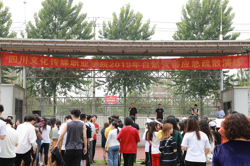 2019年5月12日是我国第十一个防灾减灾日,按照四川省教育厅和希望教育集团相关文件精神要求,为进一步加强学院的安全工作,增强学生面对自然灾害发生时的应变、自救,以及迅速有序撤离现场的自护能力,提高学院安全管理水平,近日,四川文化传媒职业学院进行了自然灾害应急疏散演练。安保处处长佘怀川担任本次演练总指挥。