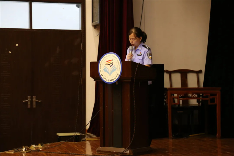 会前,四川文化传媒职业学院校团委的学生干部协助银行工作人员在四教楼前设置了宣传展台,上面摆放着各种各样的金融知识宣传册。热情亲切的银行工作人员一边发放着宣传手册,一边积极地为周围同学们普及着金融知识。同学们深深的被工作人员积极认真的工作态度打动,都抱着想要多学习一些益于自身的防骗知识的心态踊跃进入小剧场参加座谈会。在座谈会现场掌声如潮,座无虚席,参与防骗宣传的警官首先用自己的实际经验和专业知识为同学们讲解了当地电信诈骗案例,教导同学们在网络借贷等涉钱交易中如何有效识别诈骗行为,并知晓相关防范措施。
