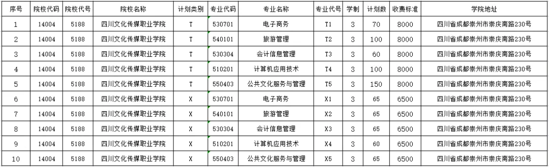 备注:具体专业及计划以省教育考试院公布为准!