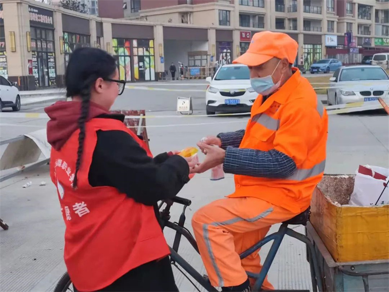近日,我院校团委组织青年学生志愿者开展2021感恩季“冬日暖流”公益活动,为辛勤劳动的基层工作人员送去牛奶、面包、矿泉水等物资,感谢他们为校园做出的贡献。活动开始前,校团委面向各个班级进行了志愿者招募和物资采购,采购物资所用经费均为志愿者自主筹集,到活动当天,共有90名志愿者分为三个小组同步进行。