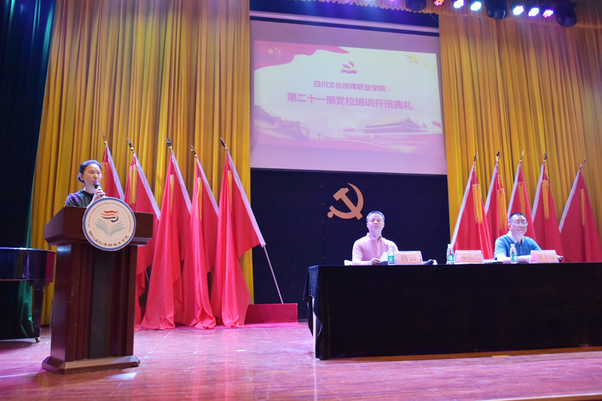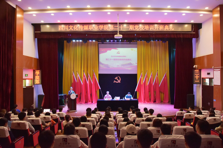 为严格贯彻落实党的十九大精神,严把“坚持标准、保证质量、改善结构、慎重发展”十六字方针,切实做好入党积极分子培训和党员教育工作。近日,四川文化传媒职业学院第二十一期党校培训开班典礼在崇州校区小剧场隆重举行。学院党委书记、党校校长谢桂兰,党委委员、第一党支部书记屠金权出席典礼,党政办主任、各党支部书记、党校班主任、党员教师以及第二十一期党校培训学员参加典礼。