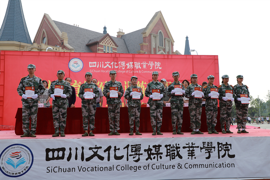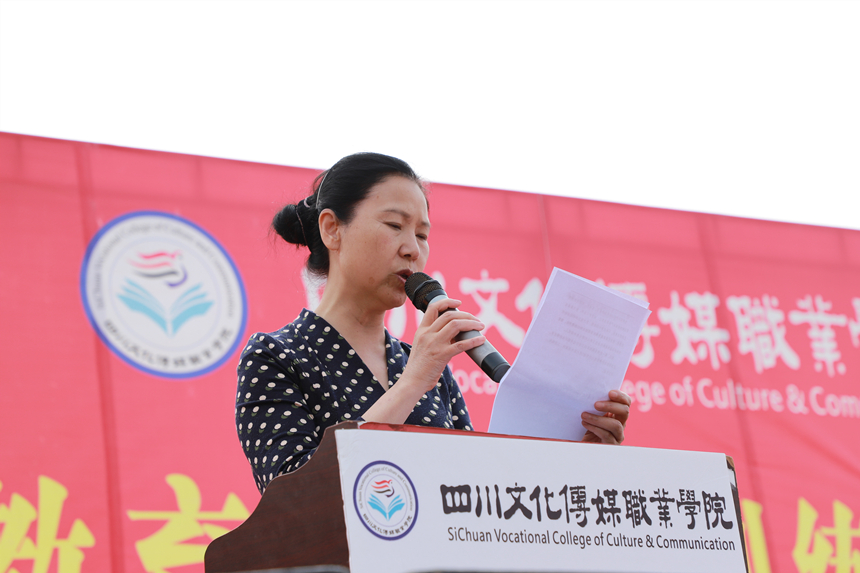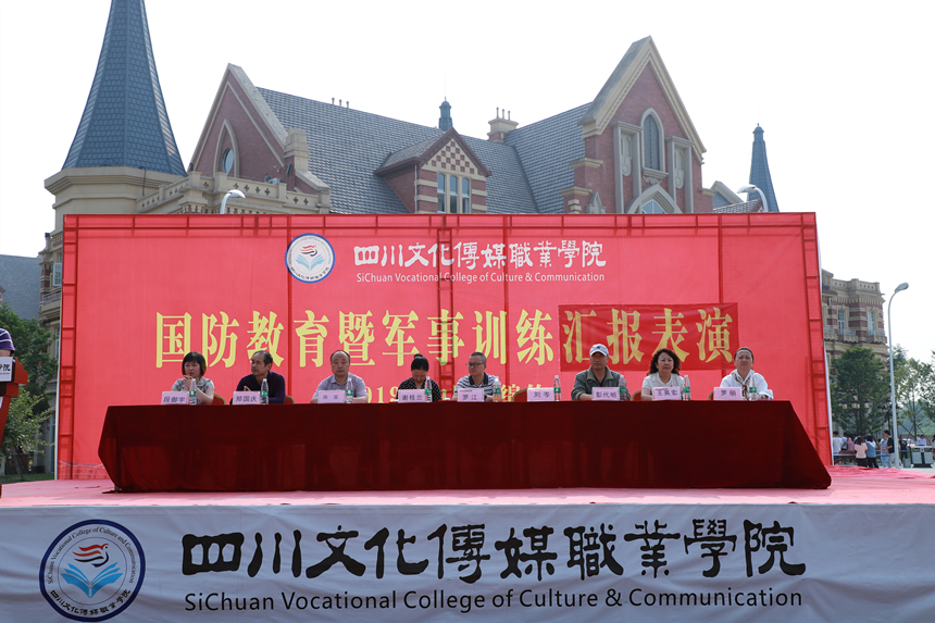 近日,四川文化传媒职业学院绵竹校区2019年新生军训汇报演出在运动场隆重举行,学院党委书记谢桂兰、学院副院长罗江、院长助理陈雷以及各系部负责人出席本次军训汇演活动,全体教师及2019级全体新生参加了此次汇报演出,汇演由院团委副书记李学洋主持。