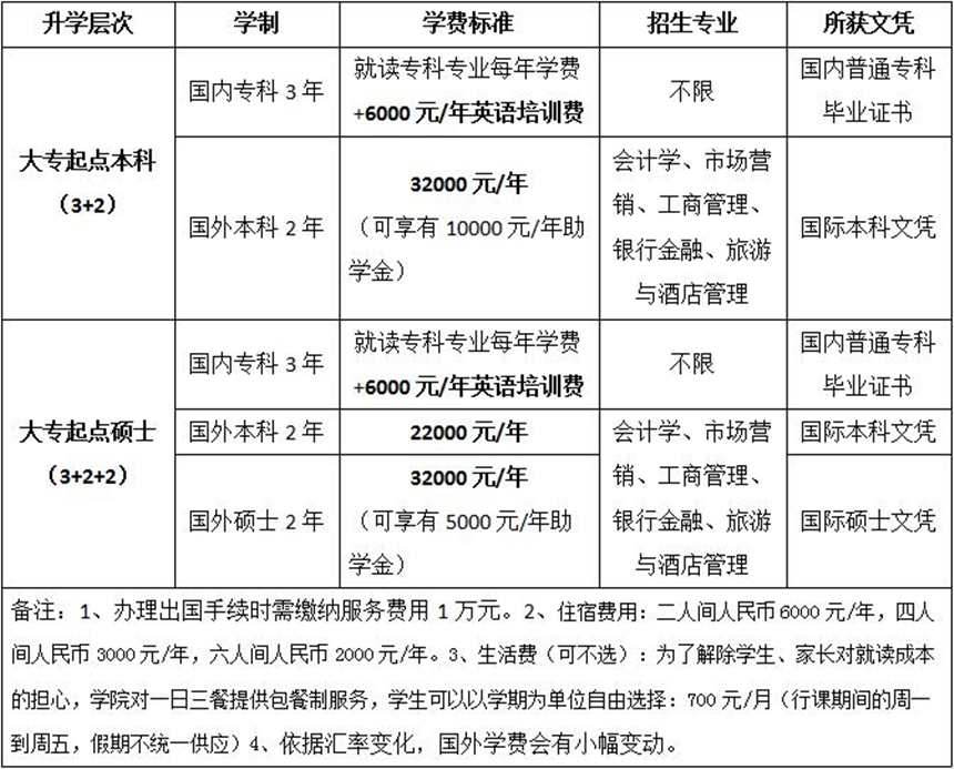 报读我院专科升本科、专科升硕士国际升学班的学生,其目的均为能够顺利升学就读我院指定的马来西亚的本科院校(报读本科专业或本科+硕士专业),因此在学生专科合格毕业和英语雅思成绩达到5.5以上的前提下,我院承诺: