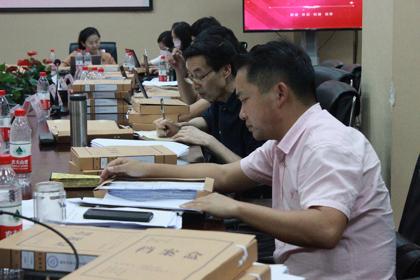上午11点,集团教管委办学评估考核工作组在综合大楼会议室查阅资料。