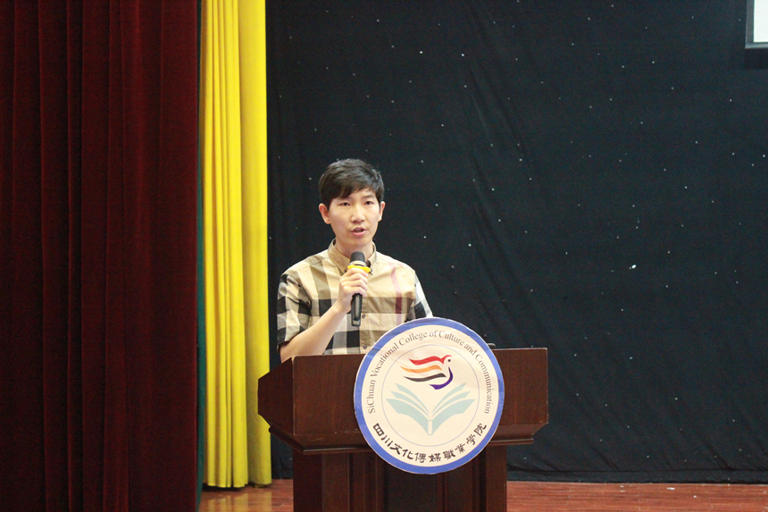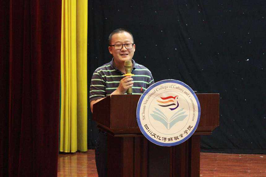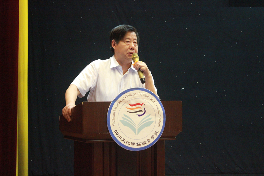 副院长周宇解读《四川文化传媒职业学院办学理念和定位》。周院长讲到,本次办学定位自上而下、自下而上反复多次的讨论,是学院办学思想的一次大讨论。学院将坚持落实立德树人的根本任务,主动对接四川“文化强省”和成都“世界文化名城”战略,不断加强师资队伍建设和实训基地建设,逐步创造条件,力争部分优势专业培养本科层次高职人才。同时,必须坚持“校企三对接、能力四递进、素质全贯通”的人才培养模式,培养具有良好职业精神和职业技能的基层文化工作者。
