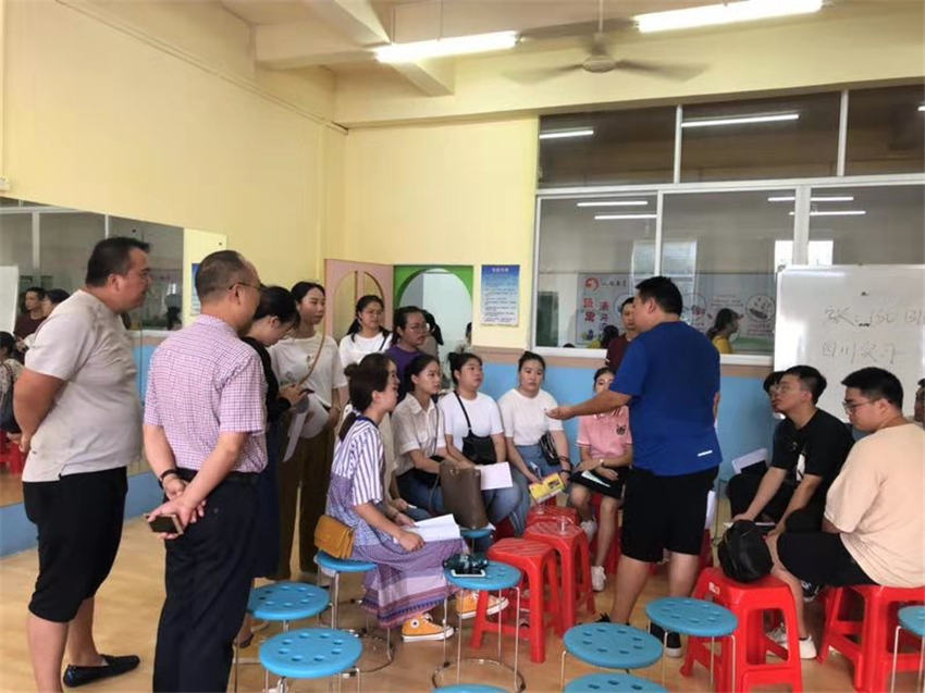8月11日,炎炎夏日,四川文化传媒职业学院院长助理陈雷、艺术设计系副主任于兴财及就业处吴畏、李洪琴老师一行4人,前往广州诚唐教育集团对学前教育专业学生实习的单位进行了走访考察, 并亲切看望了在企业参加实习的学前教育专业学生,并就下一步我院艺术设计系艺术教育专业学生的实习进行了洽谈。