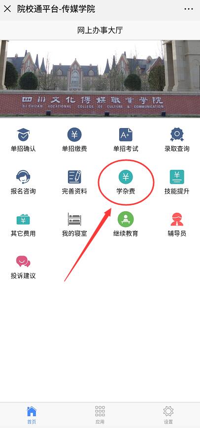二、进入在线办事大厅【应用】→【学杂费】→【我要缴费】→【立即缴费】→输入支付密码,即完成缴费。