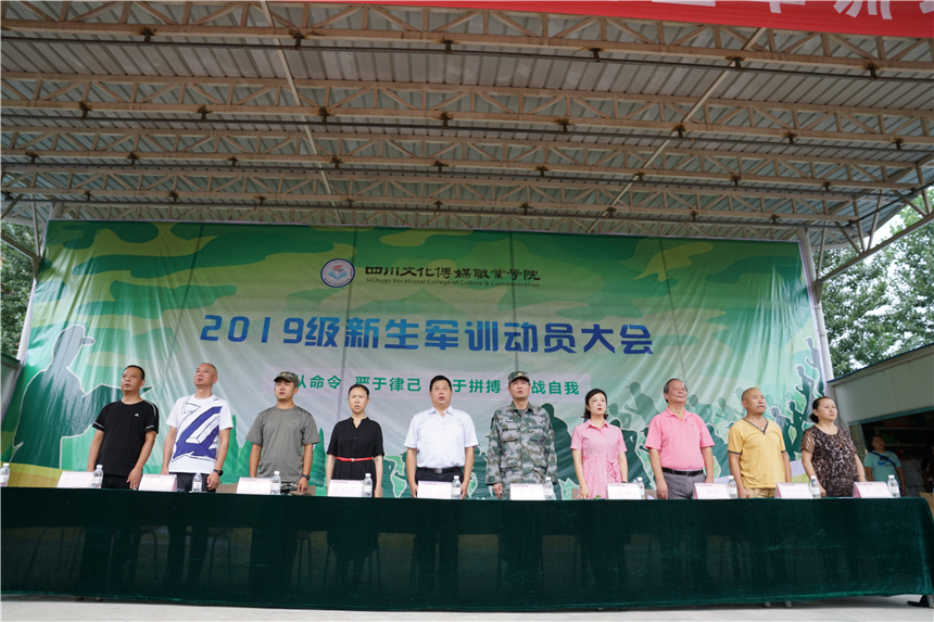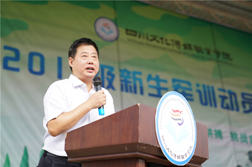 秋日多佳节,沙场秋点兵。8月28日上午9时,四川文化传媒职业学院崇州校区2019级新生军训动员大会在操场举行。崇州市人民武装部副部长熊伟、学院院长杨宁、执行院长罗琴、党委书记谢桂兰、副院长周宇出席大会,军训团团长吴杰、崇州校区各系部主任、全体辅导员以及2019级新生参加。大会由学生处副处长蒲江江主持。