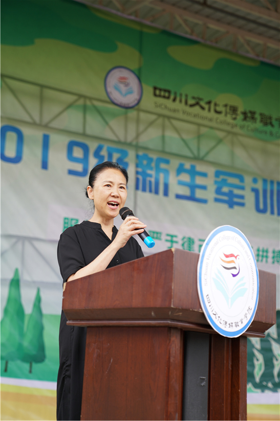 首先,学院党委书记谢桂兰宣读《四川文化传媒职业学院2019级学生军训团组成及任职命令》。