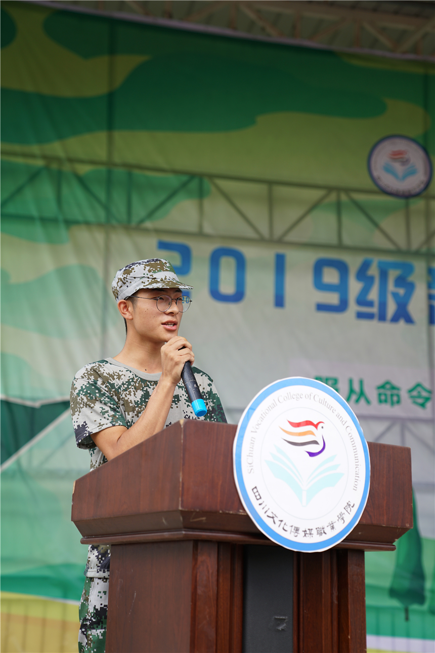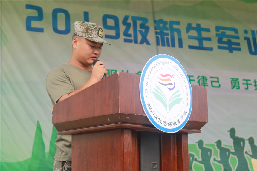 2019级军训新生代表阿支建军发言,他说到,作为一名新生,我们所肩负的不仅仅是自己要有优秀的学业和成绩,更重要的是作为新时代大学生,我们是新一代的接班人和开拓者,我们肩负的是时代赋予我们的责任和使命。相信在学院领导的关心下,在教官的严格要求下,我们全体新生一定会向社会、向学院、向自己交上一份满意的答卷。