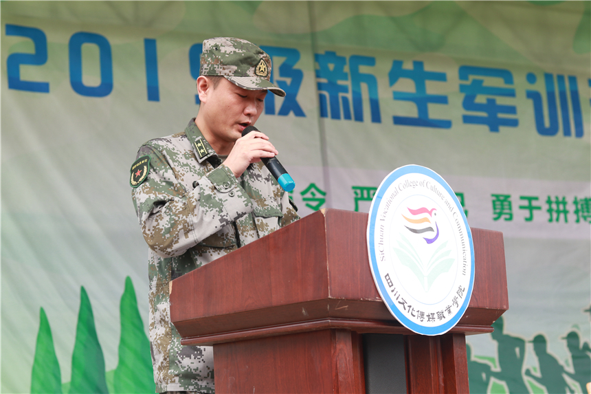 崇州市人民武装部副部长熊伟向全体教官提出三点要求:一是要科学组训。严格按照学院要求、严格按照军训大纲的规定,科学严密组织训练。二是要文明施训。在军训过程中,不仅要把过硬的军事技能教给同学们,更重要的是要把部队好的传统、好的作风、好的形象展现给同学们。三是要谦虚好学。学习学院严谨治学的学习态度,促进我们的军训工作。