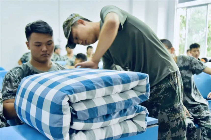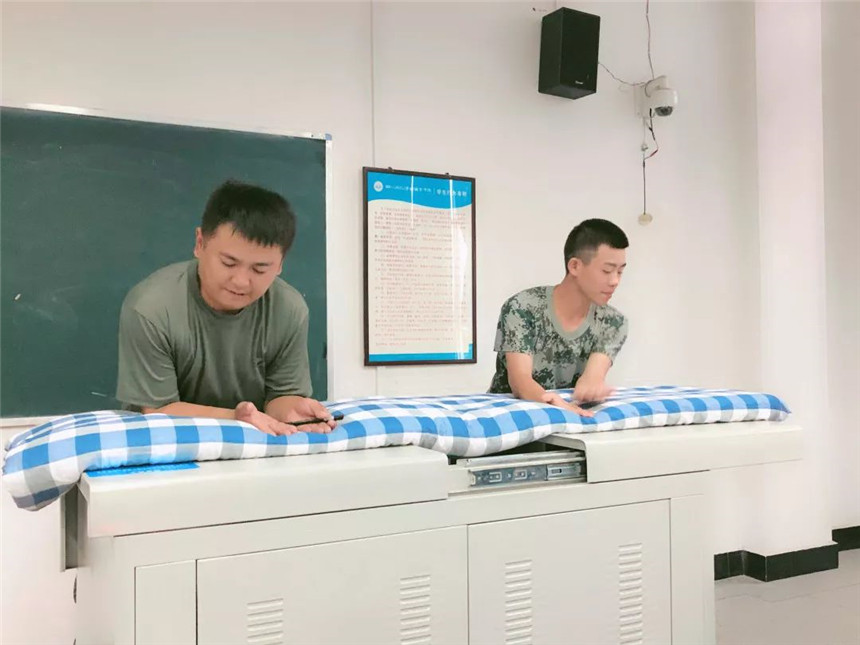 “出门看队伍,进门看内务。”内务规范无小事,叠好方块被更是重中之重,可以培养出军人的意志品质以及良好的卫生习惯,是健康向上的大学生活的有力保障。