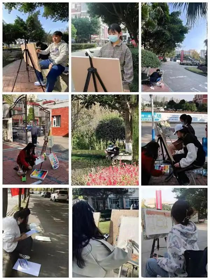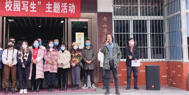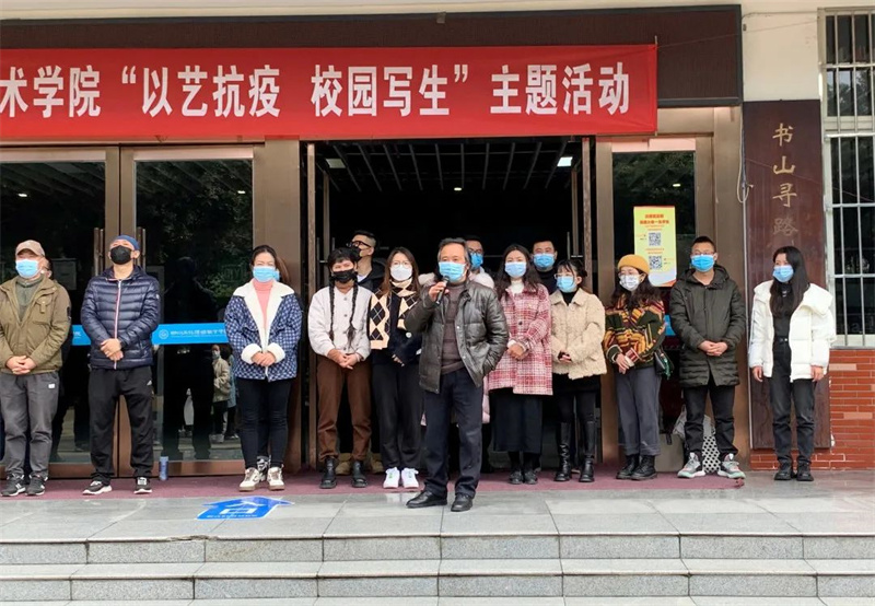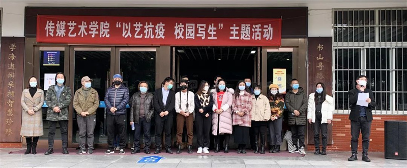2021年11月17日中午阳光灿烂,由四川文化传媒职业学院传媒艺术学院党总支主办,艺术设计系党支部承办的“以艺抗疫,校园写生”主题党建活动于学院图书馆门口正式启动。本次活动仪式由艺术设计系党支部书记、系主任陆奕兆主持,传媒艺术学院院长彭代明教授、党总支书记何柳、副院长于兴财副教授、特聘教授陈荣(成都市文艺评论家协会主席)、特聘教授钱磊(成都市美术家协会副主席)、学生处副处长吴超艳、学管科长米家兴、解小艺,部分专业教师代表、艺术设计系教师党员代表以及学生参与本次活动。