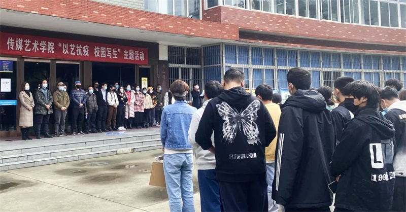 结合目前疫情形势,师生党员在文传校园内,用手中的画笔描绘学校美景,表达对防疫志愿者的赞美之情,从而缓解当前疫情期间师生的学习生活压力。用艺术的力量抗击疫情,进一步激活师生面对疫情的创造力、凝聚力和战斗力。同时凸显学院三全育人的核心育人理念,推动党建与专业互促互进,提升内涵建设的发展。