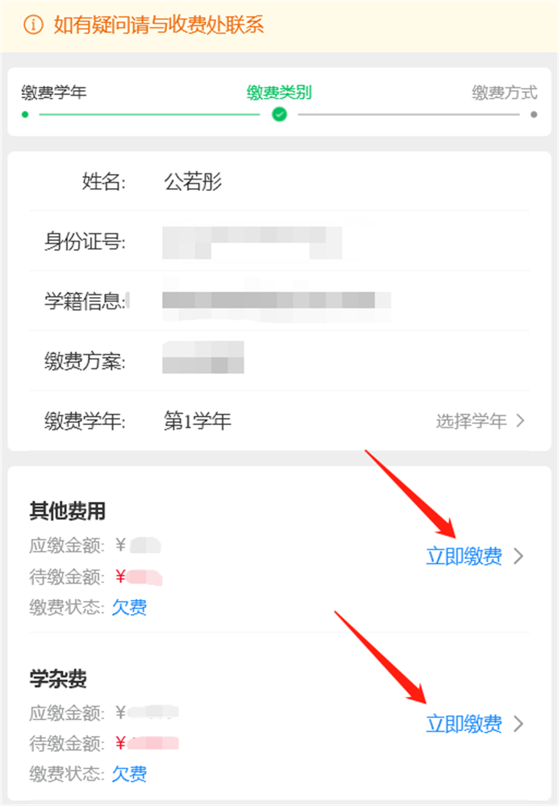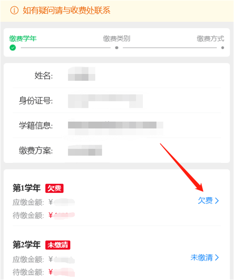 - 核实缴费信息是否正确,确认缴费学年,如果有误及时联系学校。