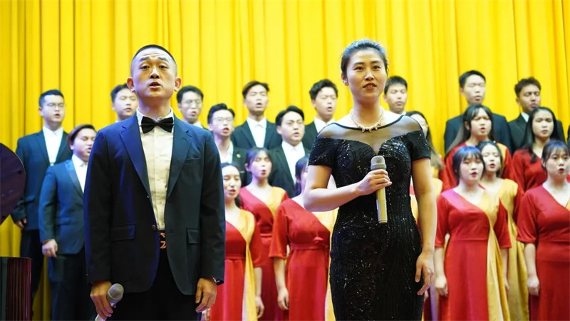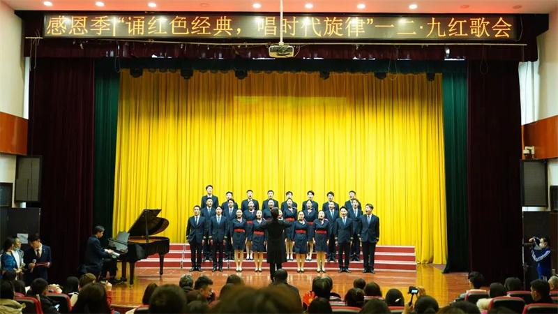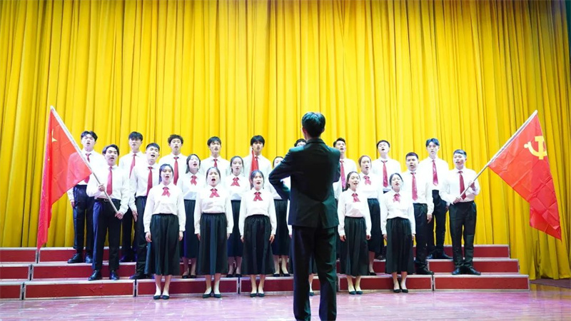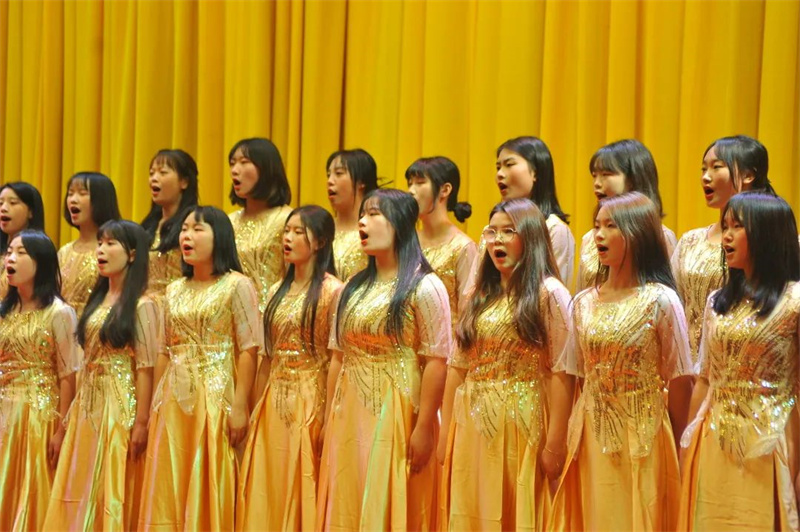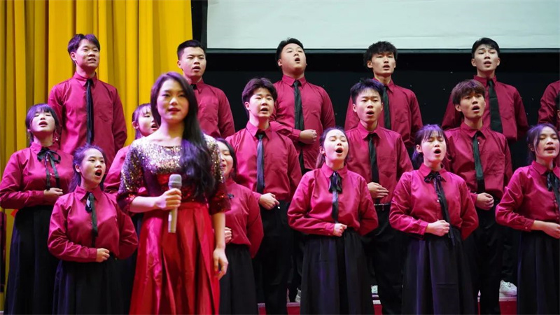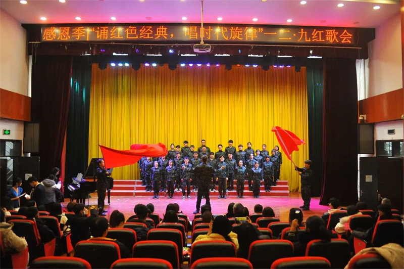 曲调轻快的《游击队之歌》、深情款款的《映山红》、斗志昂扬的《我们走在大路上》……一首首耳熟能详的经典红歌,在四川文化传媒职业学院师生的倾情演绎中催人奋进。