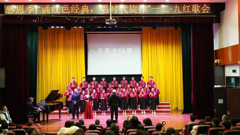 近日,为持续深入开展好党史学习教育工作、纪念“一二·九”爱国运动八十六周年,培育和弘扬民族精神,四川文化传媒职业学院在崇州校区小剧场举行“诵红色经典,唱时代旋律”一二·九红歌会。