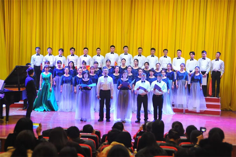 《我的中国心》、《祖国不会忘记》、《共筑中国梦》等合唱歌曲依次唱响,嘹亮的歌声、饱满的热情,歌颂了对祖国母亲的热情赞颂和深情礼赞;《团结就是力量》、《我们走在大路上》、《英雄赞歌》等歌曲唱出了我院师生牢记先辈遗志,勇于承担使命的雄心与担当……一首首歌曲将现场气氛推向一个又一个高潮,嘹亮的歌声在寒冬里点燃一把精神之火!