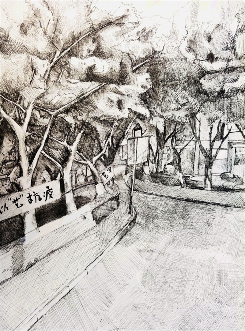 此次活动师生们生动形象地描绘了校园美丽的风景和师生奋力抗疫的情形。以下是此次活动的部分作品,请大家欣赏。