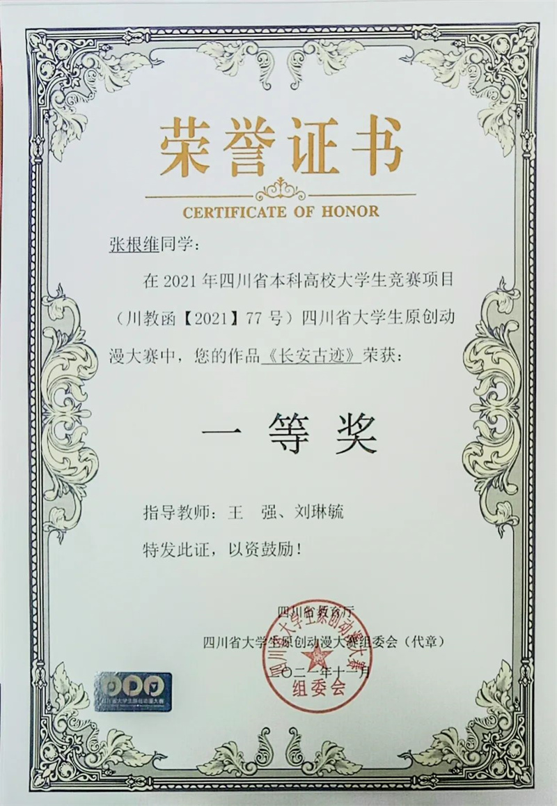 动漫专业2020级张根维《长安古迹》一等奖及优秀指导教师奖