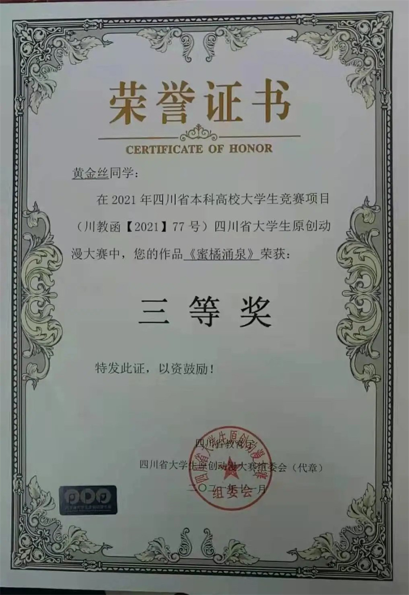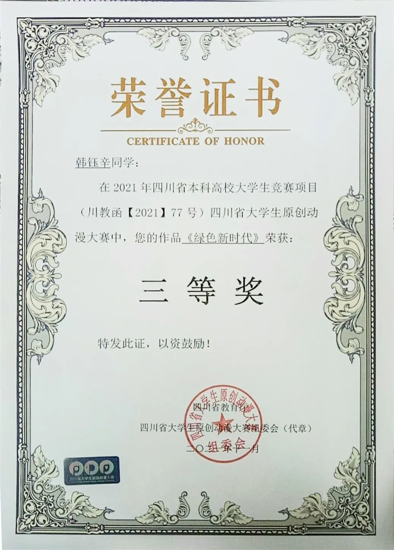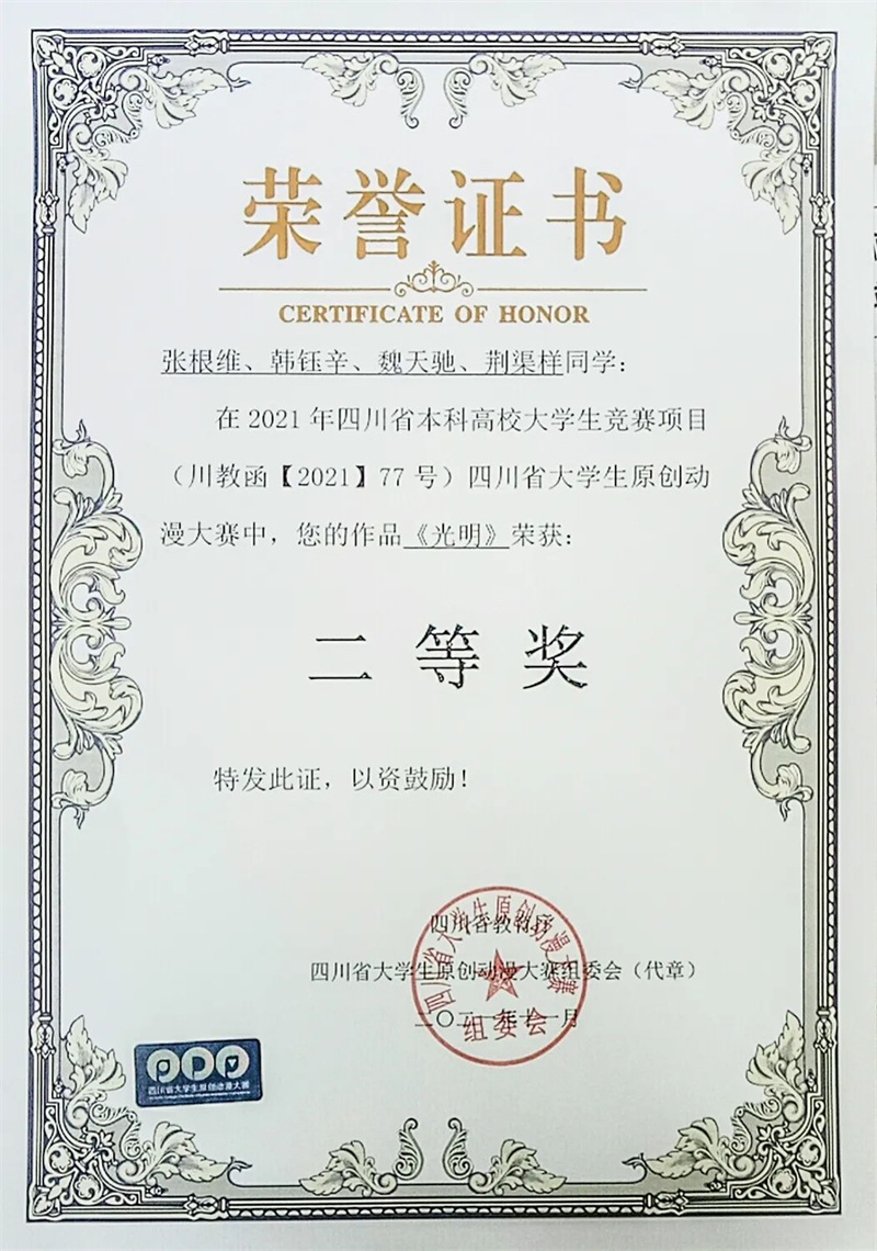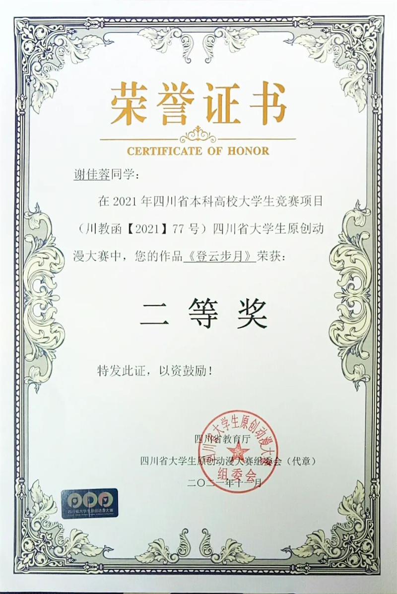 佳音频传,喜事连连。近日,“2021年四川省大学生原创动漫大赛”在四川传媒学院落下帷幕。我校传媒艺术学院数字媒体系动漫设计专业和艺术设计系广告艺术设计专业师生在大赛中共收获一等奖1项,二等奖4项,三等奖5项。王强老师和刘琳毓老师分别荣获“优秀指导教师奖”!