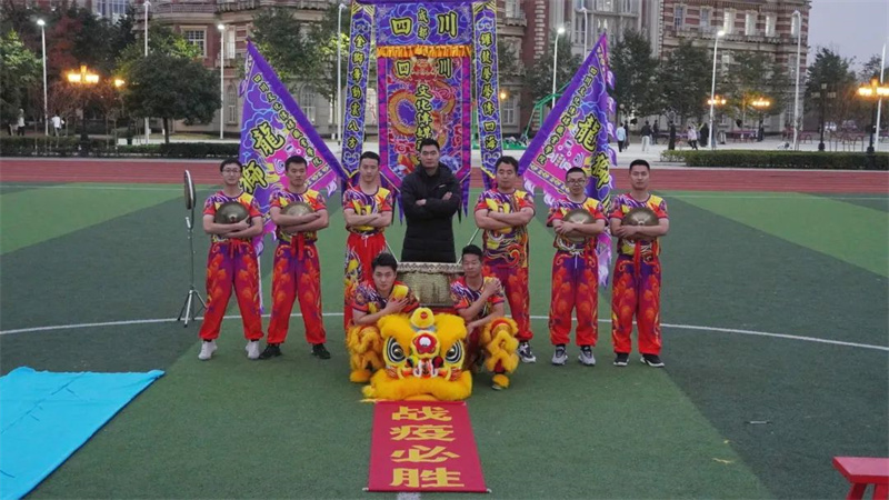 我校龙狮代表队由文化管理学院组织执行,由文化管理学院、学前教育学院、团委、基础部选派的8位老师组成,曾锐老师担任领队、杨昆老师担任主教练。代表队经过一个月的刻苦训练,最终以“雄狮战疫”为主题参加本届锦标赛的创意组项目比赛。这是校代表队第一次参加此项目的全国比赛,也是该项目目前在四川省内获得的最高名次!