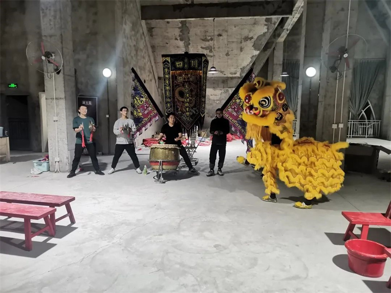 5、登高祈福,雄狮战胜病毒后登上高山,取得祝福并吐出来展示给众人。