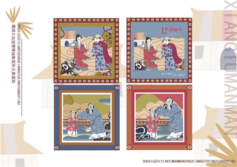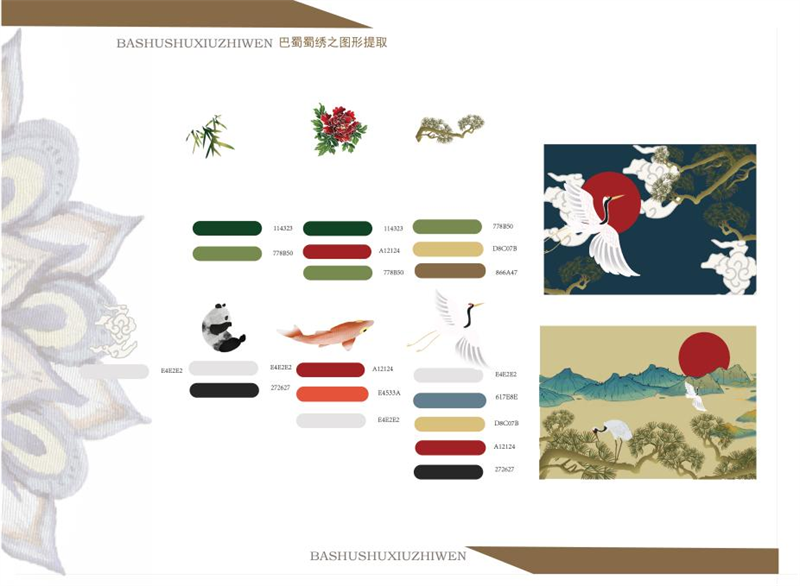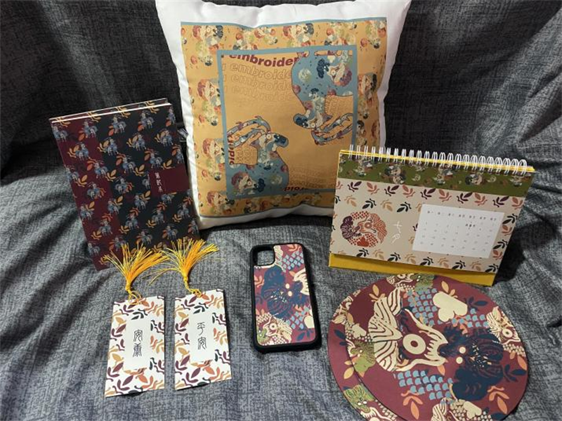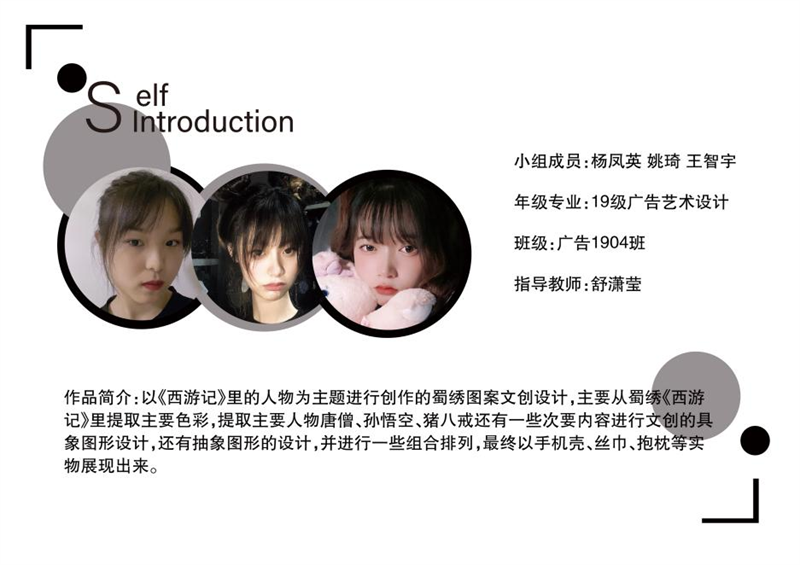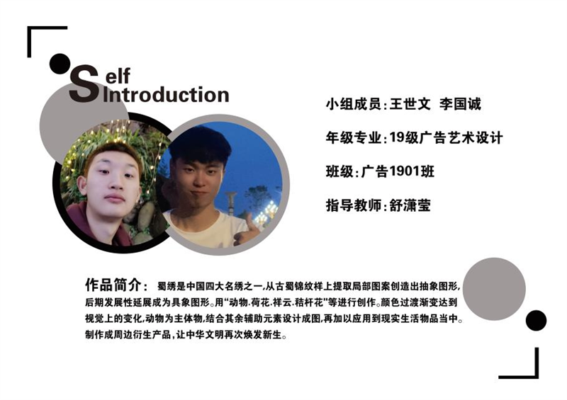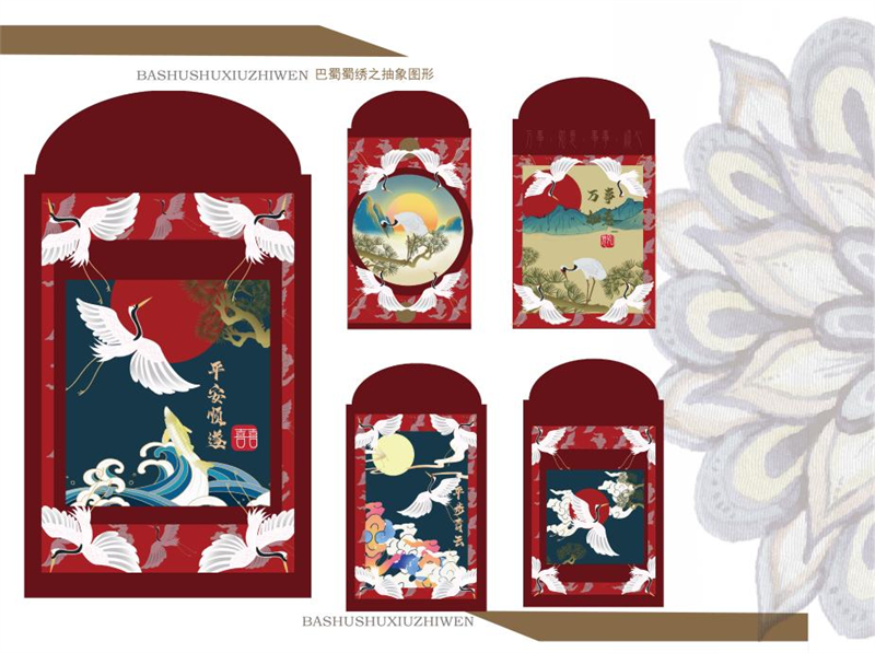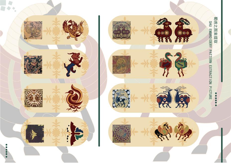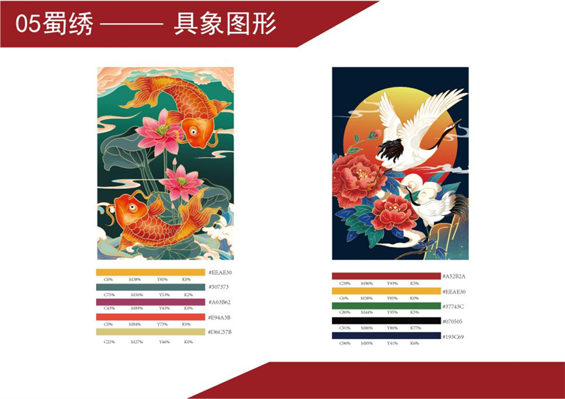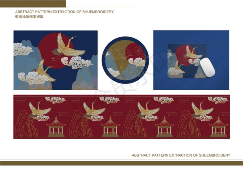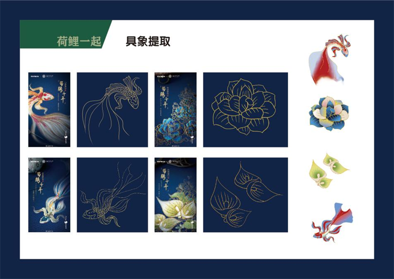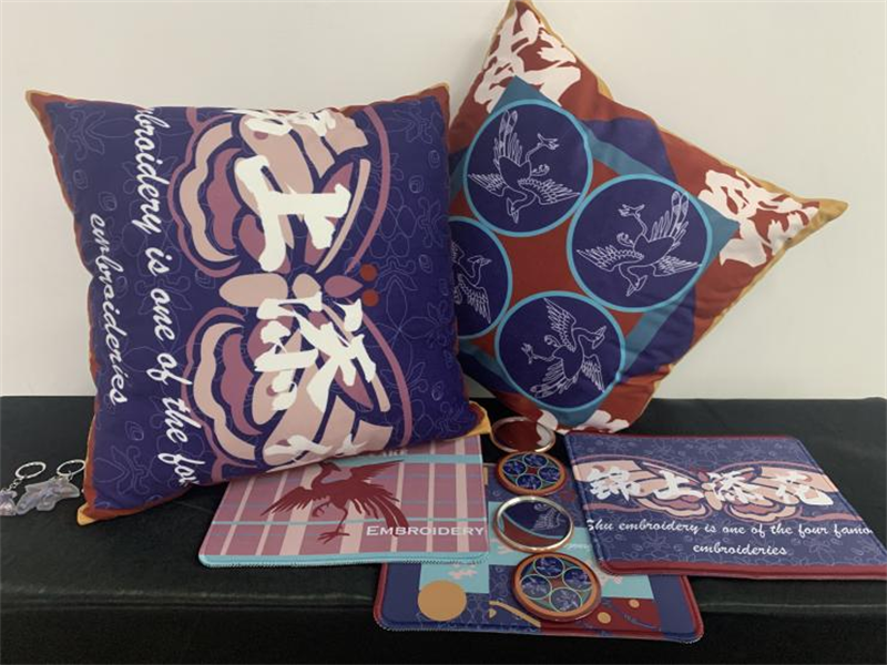 《文创产品开发设计与制作》课程不仅限于传统意义上的平面设计教学,也是某种意义上通过艺术设计的美学制作,广泛宣传对特定文化的推广,促进文化产业的发展,打造地方文化新符号,使现代文创产品设计中具有鲜明的非遗文化内涵及地域,引导学生自觉传承和弘扬中华优秀传统文化,全面提高学生的审美和人文素养,增强文化自信。课程有效的和《巴蜀蜀绣图案文化在现代文创产品设计与制作中的传承创新研究》校级课题结合,以巴蜀蜀绣图案文化为切入点,提供新的视角挖掘巴蜀文化符号,打造特色文化,创新视觉表现。通过过程性教学和项目式任务教学模式,将课程分成几个项目阶段进行教学,学生大胆创新,产出大量文创产品实物,如:鱼跃龙门主题系列红包、八仙斗艳系列丝巾、义结桃园系列抱枕、良辰美锦系列伞、蜀遇敦煌系列地毯、蓉城熊猫系列盘子等具有中国特色传统文化,又有蜀绣图案特色的文创产品。