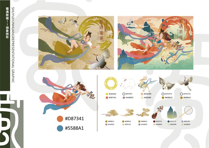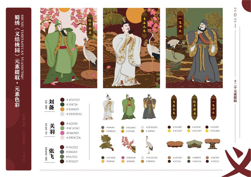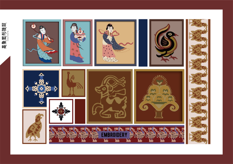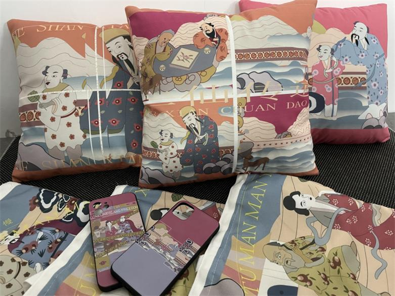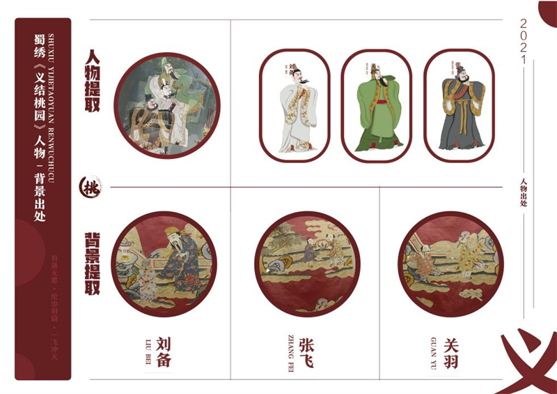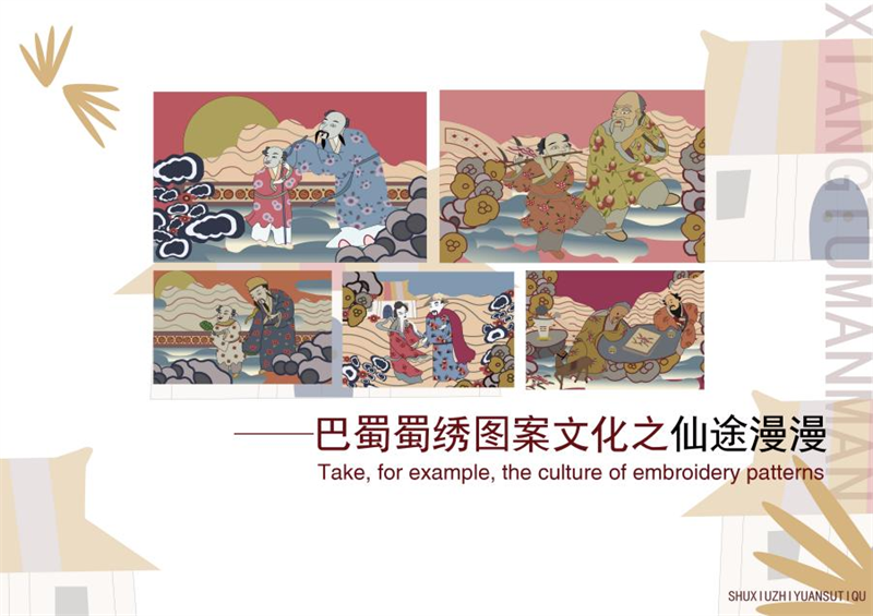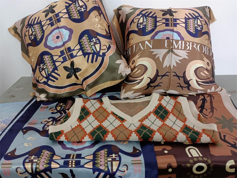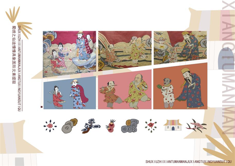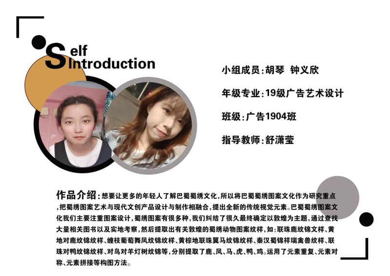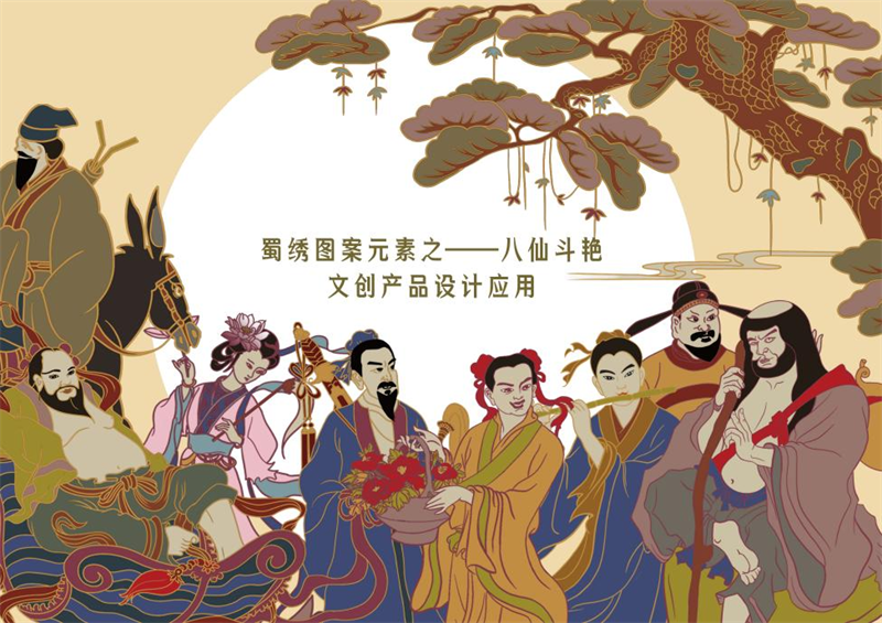 《文创产品开发设计与制作》课程不仅限于传统意义上的平面设计教学,也是某种意义上通过艺术设计的美学制作,广泛宣传对特定文化的推广,促进文化产业的发展,打造地方文化新符号,使现代文创产品设计中具有鲜明的非遗文化内涵及地域,引导学生自觉传承和弘扬中华优秀传统文化,全面提高学生的审美和人文素养,增强文化自信。课程有效的和《巴蜀蜀绣图案文化在现代文创产品设计与制作中的传承创新研究》校级课题结合,以巴蜀蜀绣图案文化为切入点,提供新的视角挖掘巴蜀文化符号,打造特色文化,创新视觉表现。通过过程性教学和项目式任务教学模式,将课程分成几个项目阶段进行教学,学生大胆创新,产出大量文创产品实物,如:鱼跃龙门主题系列红包、八仙斗艳系列丝巾、义结桃园系列抱枕、良辰美锦系列伞、蜀遇敦煌系列地毯、蓉城熊猫系列盘子等具有中国特色传统文化,又有蜀绣图案特色的文创产品。