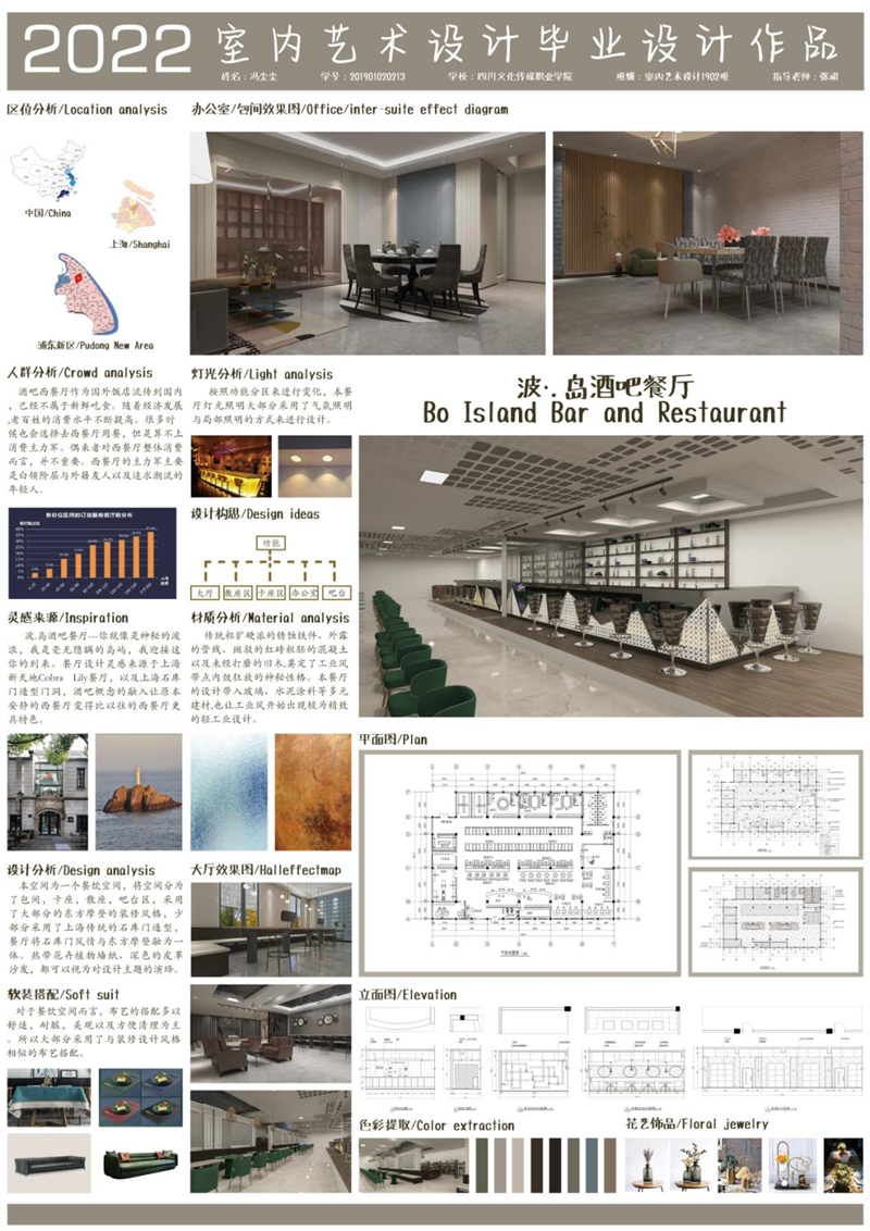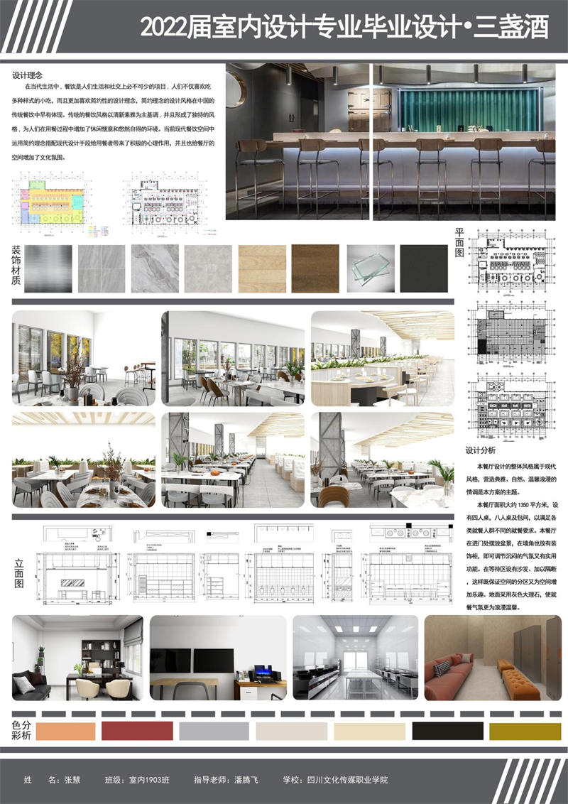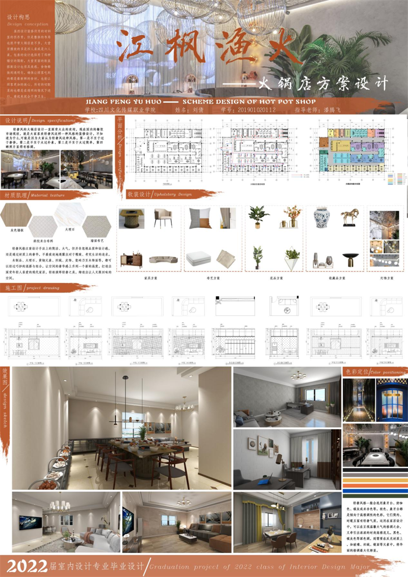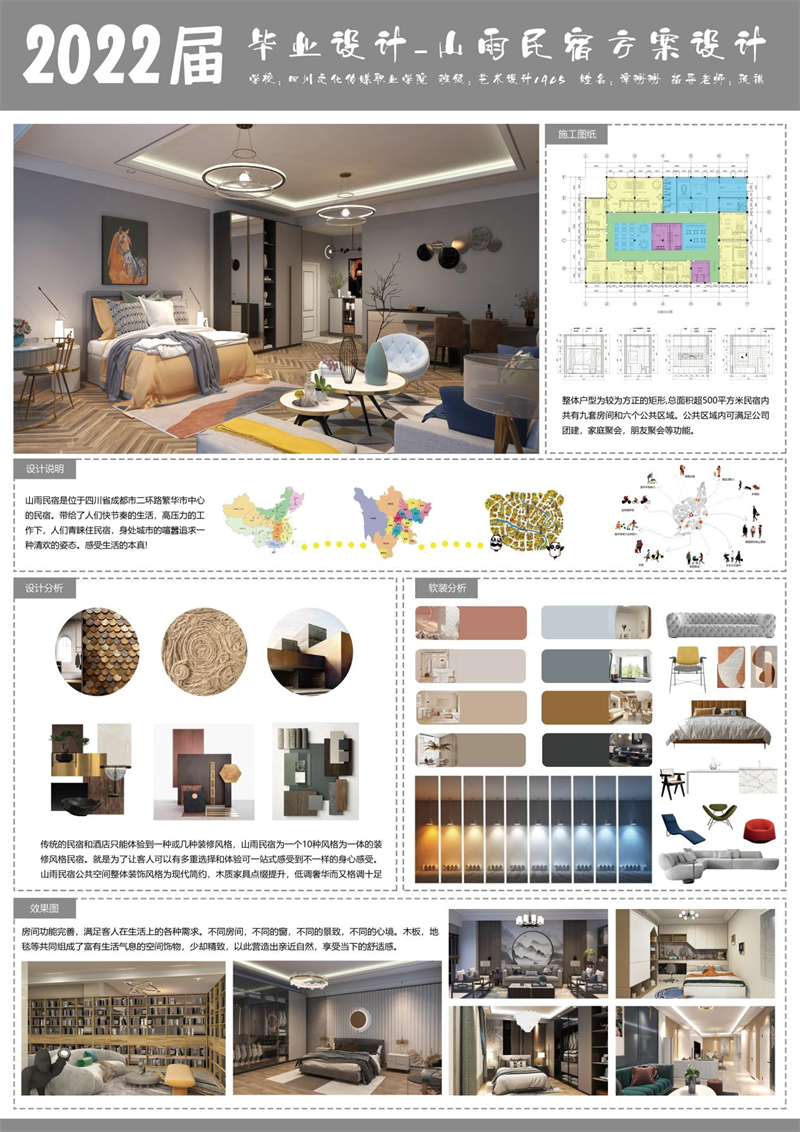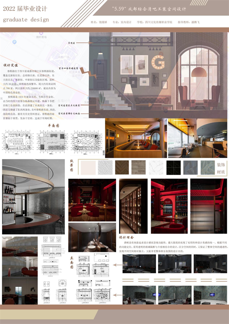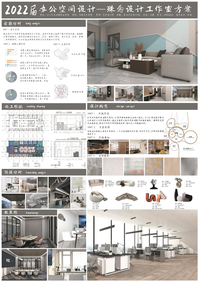 《毕业设计》课程是室内艺术设计专业必修课程,是对学生基础理论、专业知识、设计能力综合运用的体现,对培养学生分析和解决实际问题有着重要作用,也是学生大学阶段学习成果的集中体现。本课程围绕室内设计职业岗位的需求来开展教学,根据职业岗位的工作内容来组织课程内容,课程目标直接面向室内设计制作职业岗位要求,在设计实践中不断提升发现问题、分析问题和解决问题的能力,将从业所需的知识、技能及工作态度有机地整合为一体,从而提升学生的核心职业竞争力。