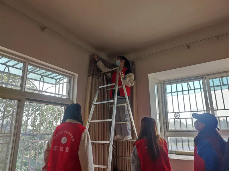 前不久,校团委组织学生志愿者到崇州市崇阳街道石羊社区开展了敬老爱老志愿服务。为孤寡老人送去关怀,用志愿服务去温暖老人心。志愿者们购买了相应物品去社区对老人们进行了慰问,陪老人们谈谈心并帮助老人们打扫卫生,以实际行动践行了“尊老、爱老、助老”的理念,让老人们在冬日里也能感受到温暖。