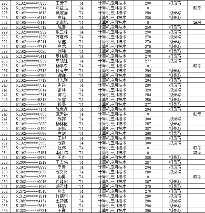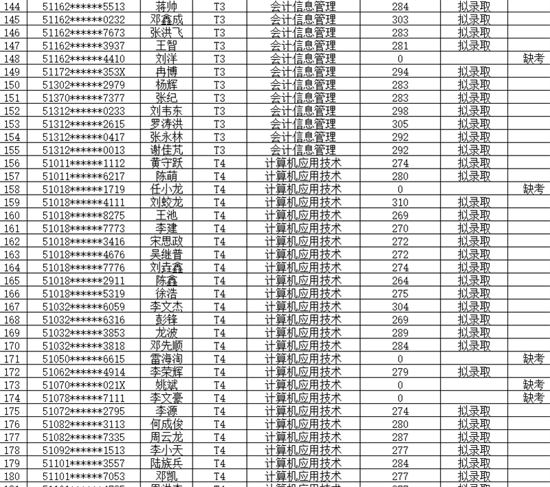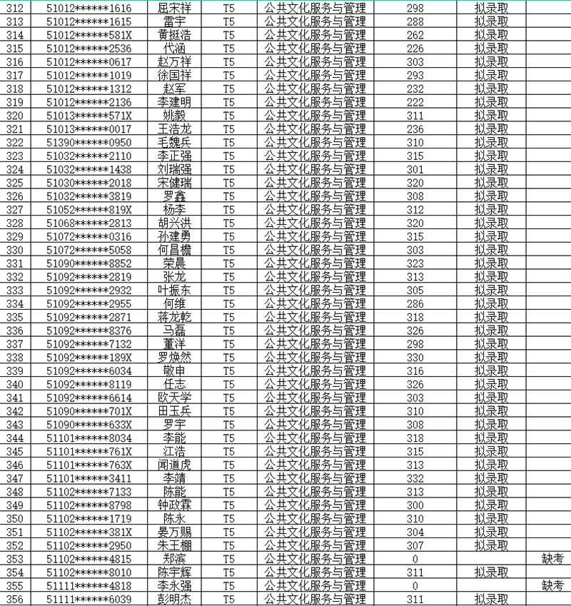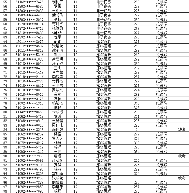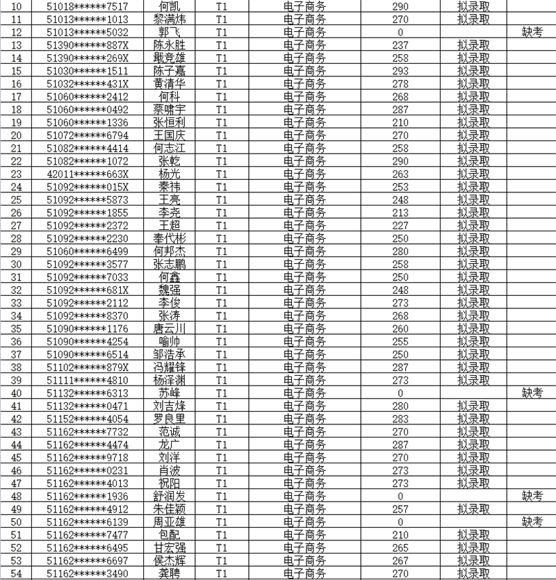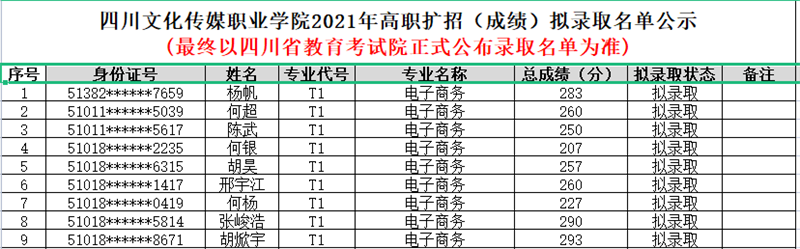 1.拟录取名单如下表: