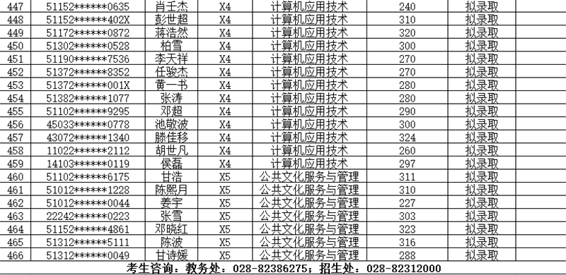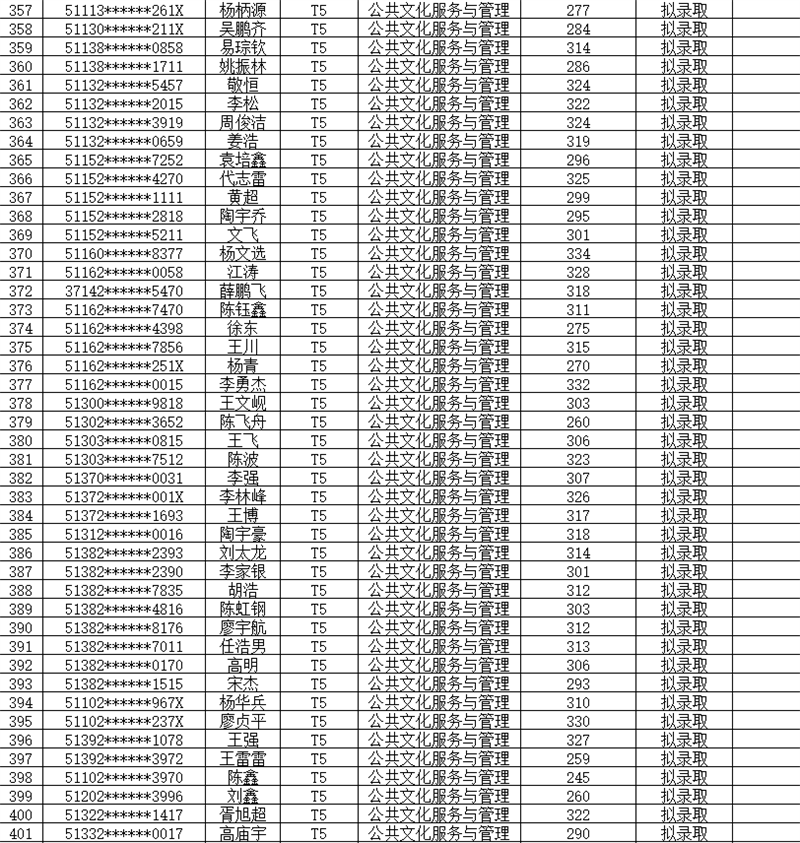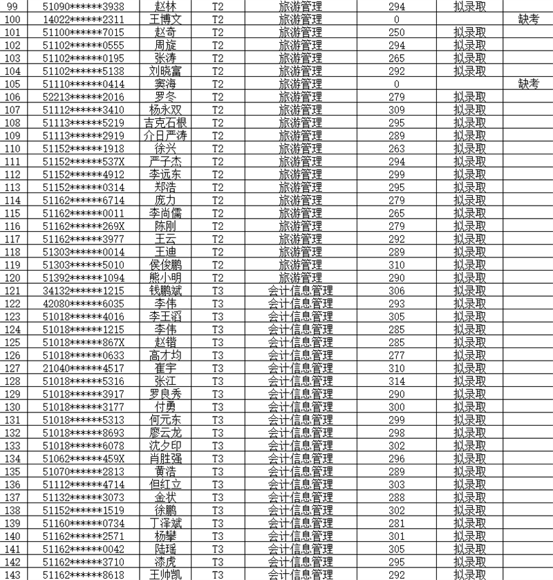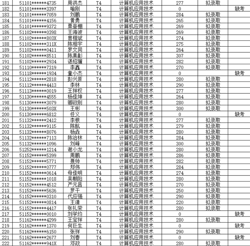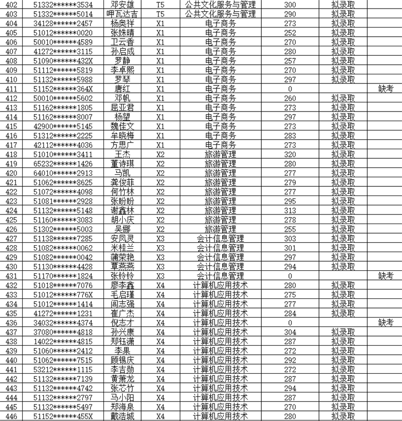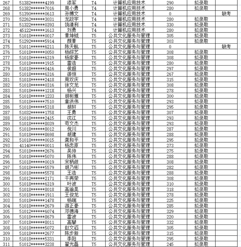 1.拟录取名单如下表:
