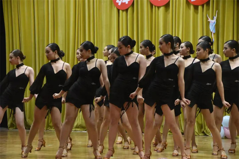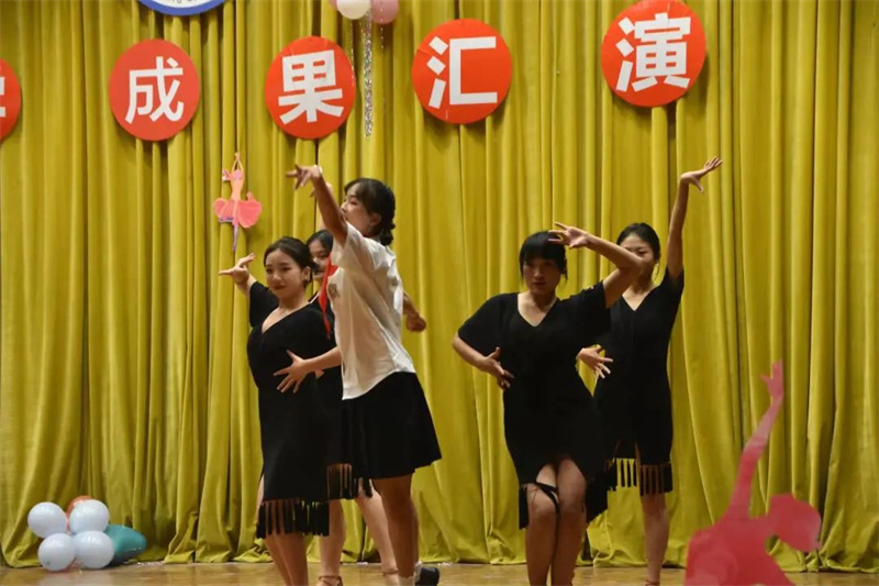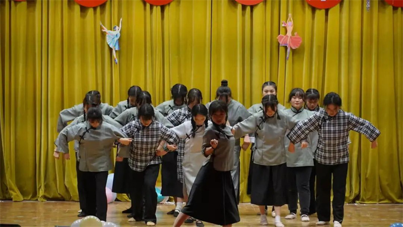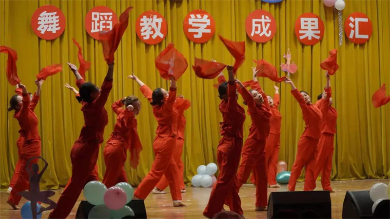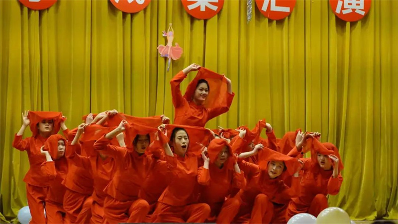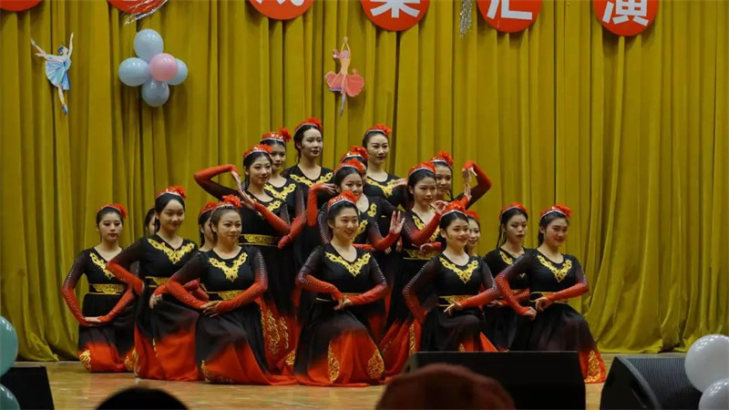 舞台上,同学们伴随音乐翩翩起舞,演出节目有优雅柔美的古典舞、有柔婉袅娜的民族舞、有刚柔相济的拉丁舞、有细腻激昂的当代舞,整场展演节目风格迥异,精彩纷呈。同时,在部分舞蹈创作中还融入了大量红色元素,凝练红色舞蹈精髓,体现出学前教育学院舞蹈教研室“红色艺术+课程思政”的育人理念。