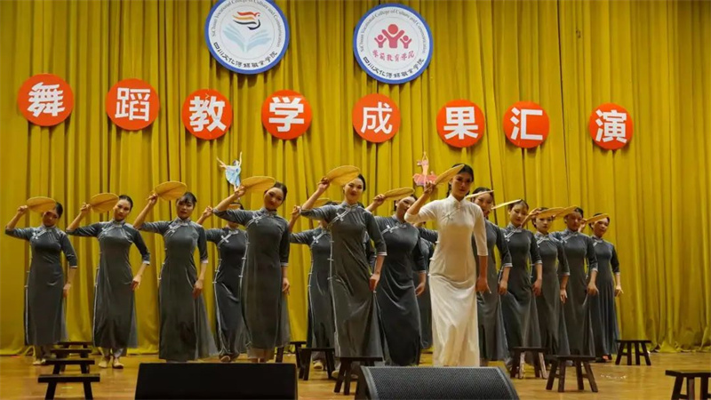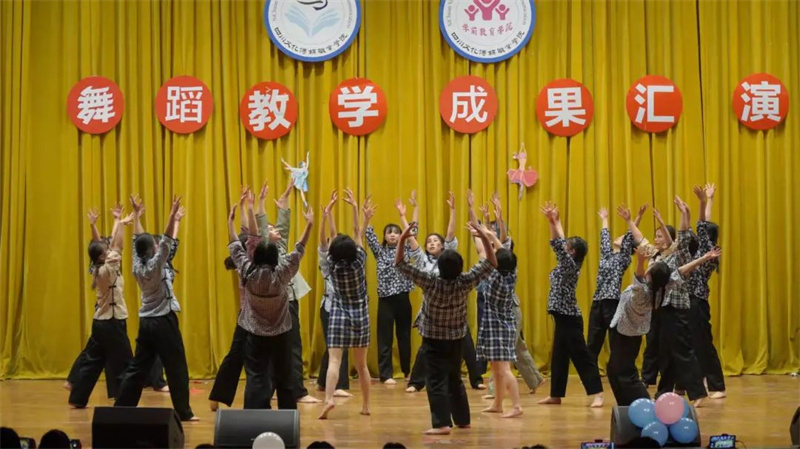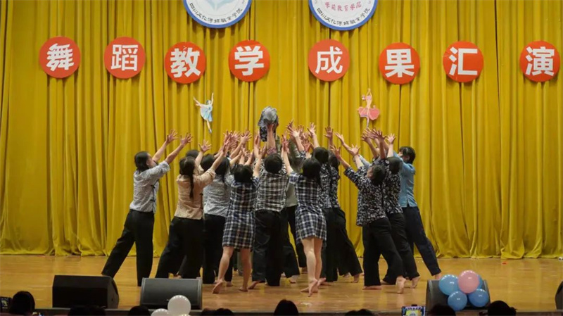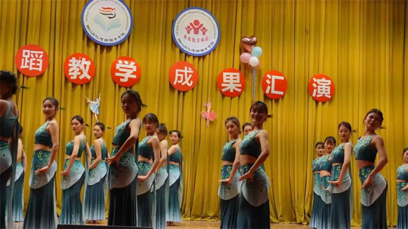 12月15日,学前教育学院舞蹈教学成果火热上演,本次汇演由学前教育学院舞蹈教研室10位老师精心编排了16个不同类型的舞蹈节目,参演人数达332人。同学们的舞蹈表演类型丰富、精神饱满,赢得台下观众一阵阵热烈的掌声。活动邀请到绵竹市文化馆馆长何文礼、田甜幼儿园园长彭莎、红樱桃幼儿园副园长孟佳及部分学院领导到场观看演出。