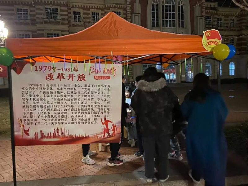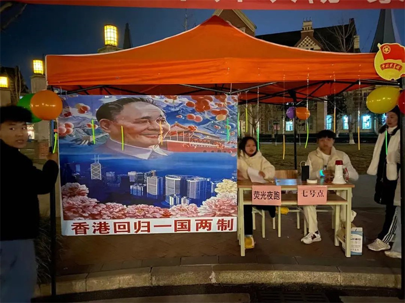 本次荧光夜跑采用环校跑的形式,从学生公寓三号楼出发途径八号教学楼、二号教学楼、食堂及六号教学楼等八个地点,夜跑线路围绕中国共产党百年发展历史的重要节点来设置线路,从1919年五四运动爆发、1921年中国共产党的诞生、到1949年新中国成立、1978年改革开放,最终到2021年中国共产党建党100周年。同学们需在指定地点完成党史竞答后,才能进入下一赛段。
