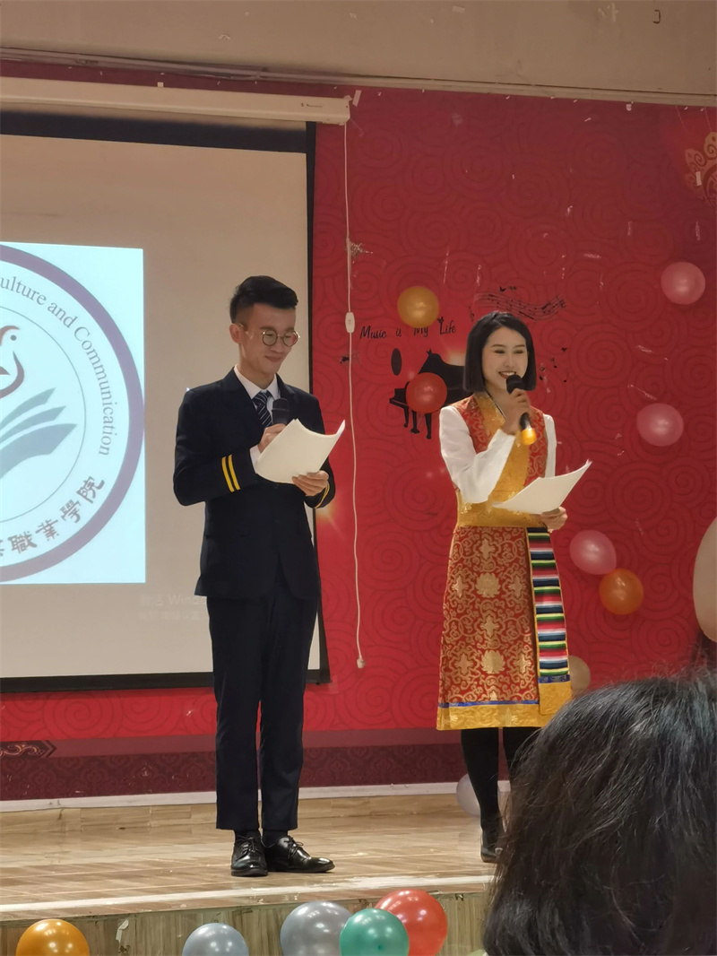 主持人航空系团总支书记康木权、空乘专业老师杜明璇