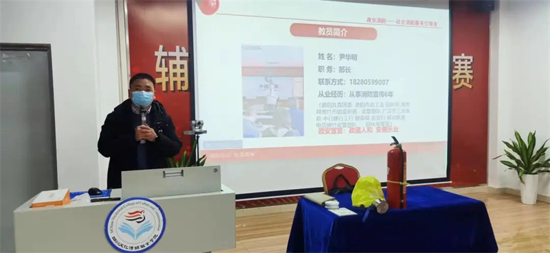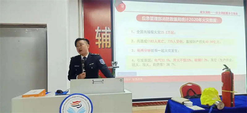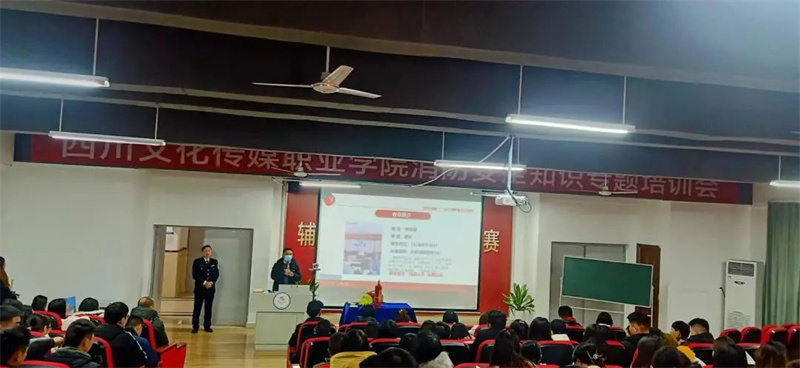 本次培训由德阳市消防救援支队政安消防知识宣教中心尹华明部长主讲。由学生处处长蒲江江主持。培训会上,尹华明部长为大家讲解了基本消防安全制度和法律法规,引导大家形成基本消防观念。他结合亲身经历的实际案例,并配合一幅幅触目惊心的图片、一段段发人深省的视频,生动地讲解了“人人都应该掌握的”消防安全知识。