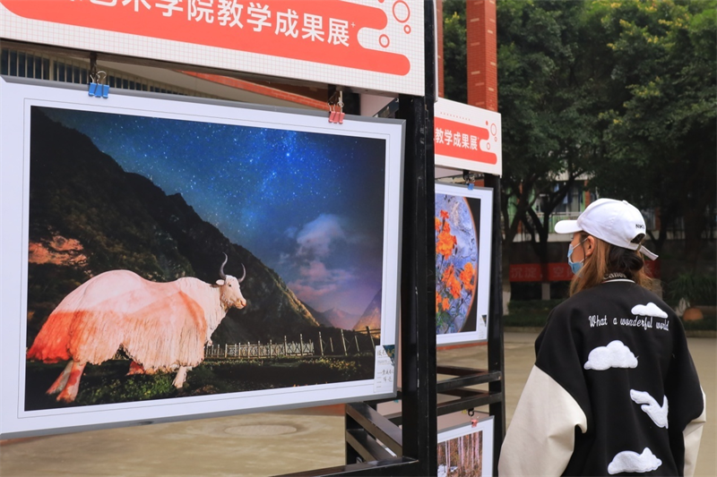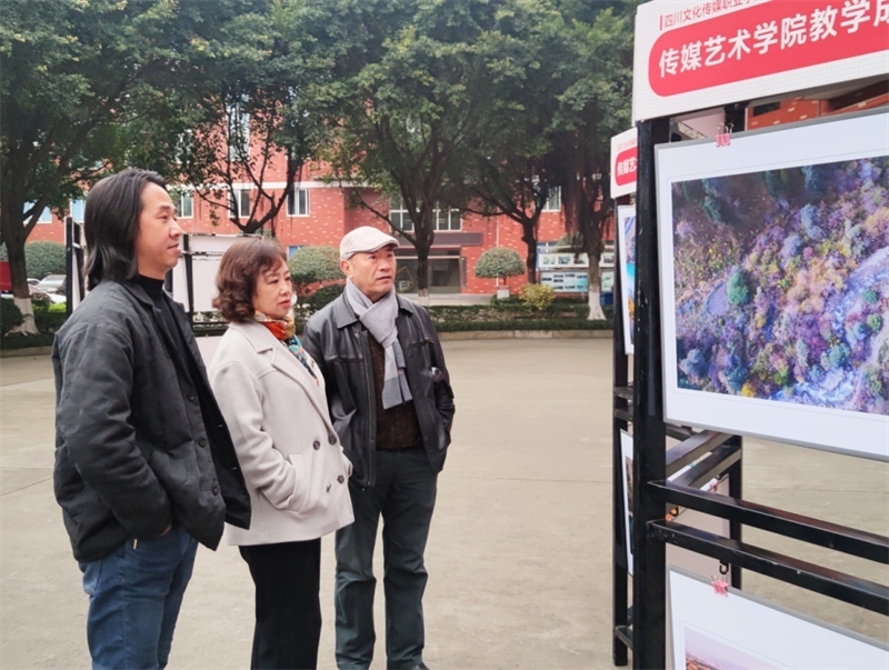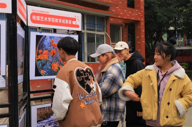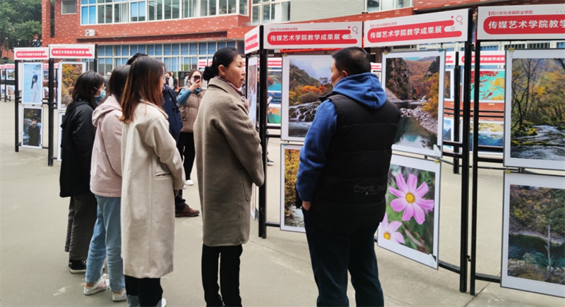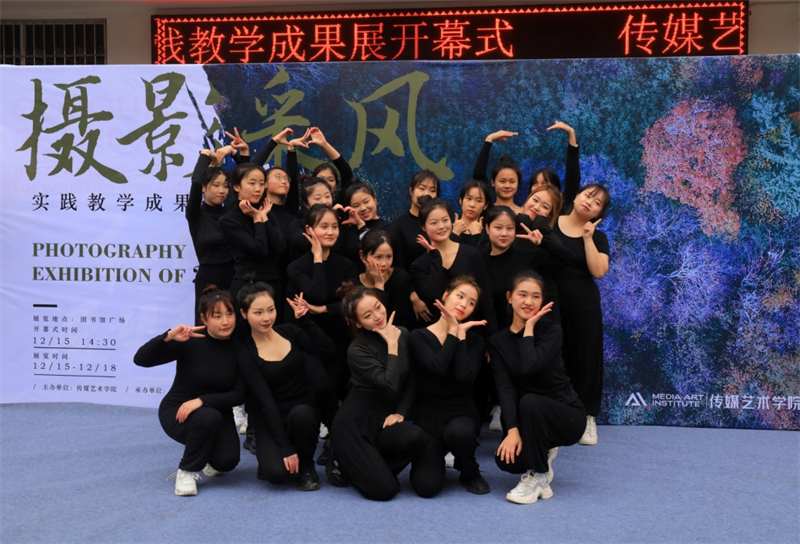 近日,传媒艺术学院艺术设计系“筑梦艺术,设计未来”摄影采风实践教学成果展在图书馆门口举办开幕式。